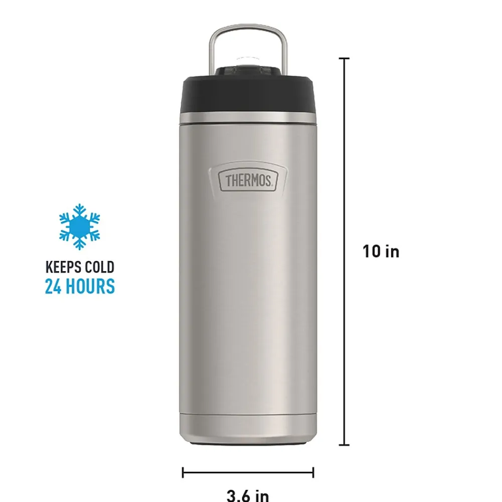 Starts cold. Stays cold. The Icon™ 32-Oz. Stainless Steel Water Bottle from Thermos® keeps you hydrated to take on the day. From the Griptec™ base to superior vacuum insulation and durable True-Coat™ finish, the bottle is ideal for everyday use. It’s also equipped with a durable pivot straw made with Tritan™ from Eastman® and a wide-mouth opening to keep up with your busy day. No detail has been left behind. The bottle is not for use with hot liquids. It is dishwasher safe.