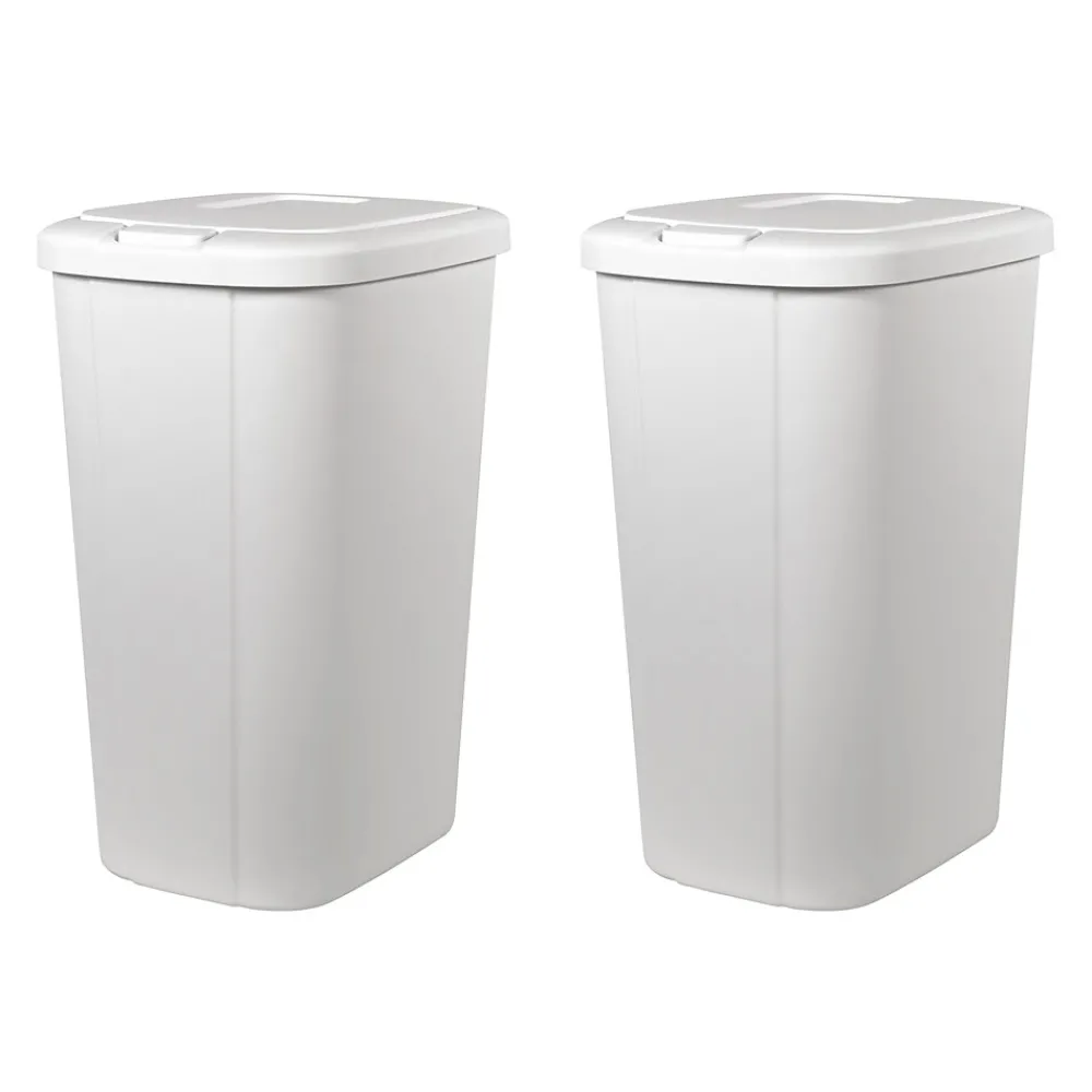 The Hefty touch lid plastic kitchen trash can in matte white has everything you need and nothing you don’t. The slim profile allows you to neatly tuck the bin away while still offering a large 13.3-gallon capacity. The spring loaded lid pops open with the simple touch of a button and clicks securely closed, helping to reduce odor. Plus, the trash bin is made of durable plastic to withstand daily use and can be easily wiped down when needed. This Hefty trash can will look great in your kitchen for years to come. The best part is, it fits a standard 13-gallon trash bag perfectly!