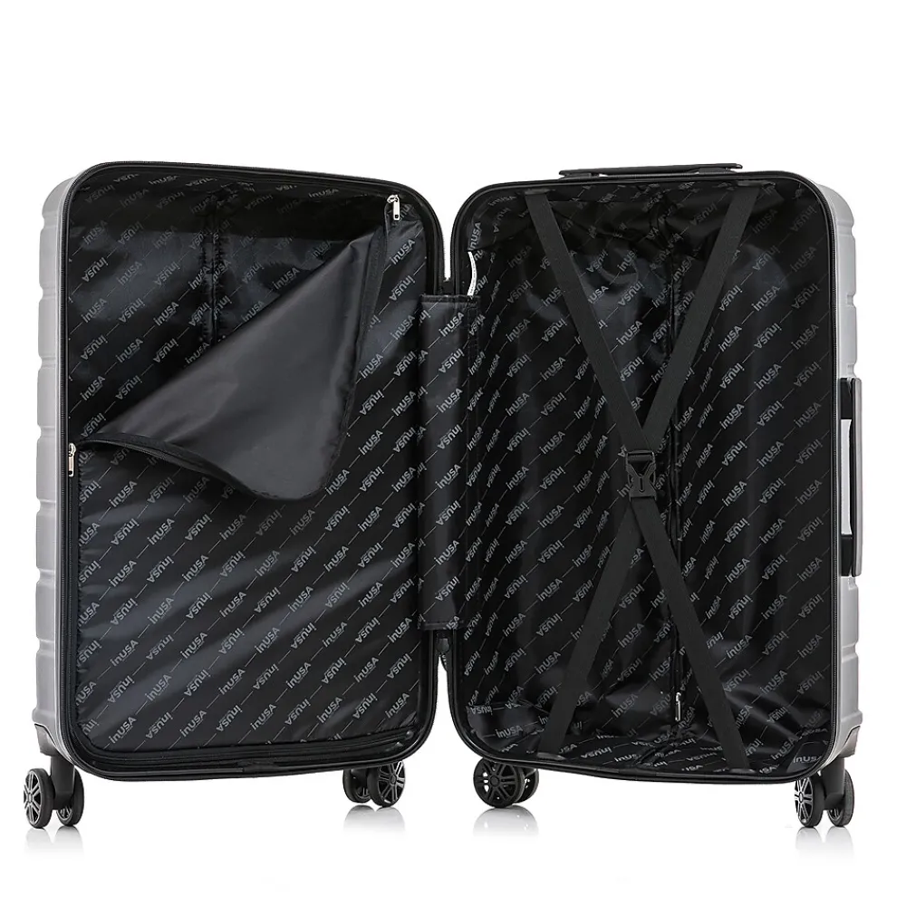 Improve your travel experience with this InUSA Trend carry-on luggage. Made of lightweight PC/ABS engineered material with a brushed finish, this luggage features a push-button locking internal retractable trolley system and four dual 360-degree silent spinner wheels for smooth, effortless mobility. The hard-flex construction offers maximum strength, durability, and resistance to water and scratches. Four side studs let the luggage stand on its side, while the top ergonomic gel handles provide comfortable and easy lifting.