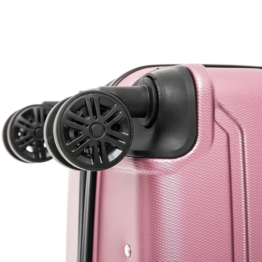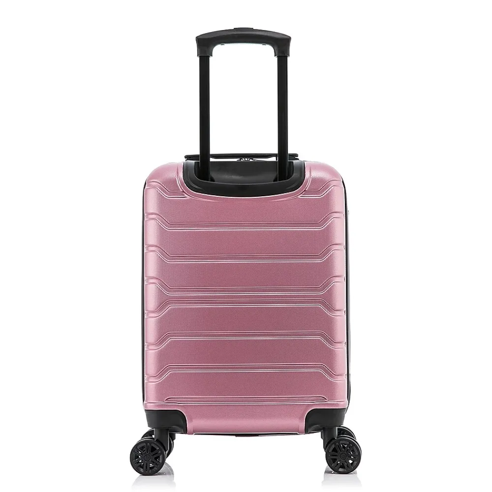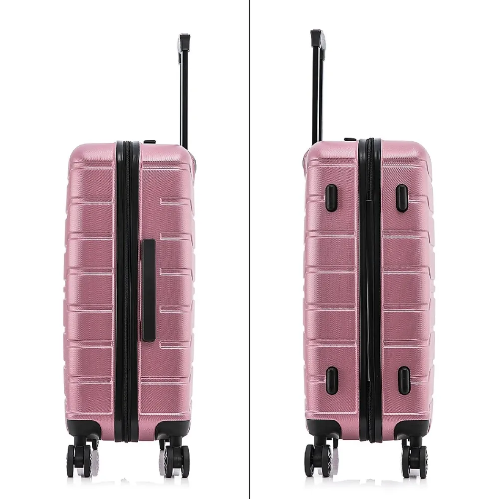 Improve your travel experience with this InUSA Trend carry-on spinner luggage. Made of lightweight PC/ABS engineered material with a brushed finish, this luggage features a push-button locking internal retractable trolley system and four dual 360-degree silent spinner wheels for smooth, effortless mobility. The hard-flex construction offers maximum strength, durability, and resistance to water and scratches. Four side studs let the luggage stand on its side, while the top and side ergonomic gel handles provide comfortable and easy lifting.
