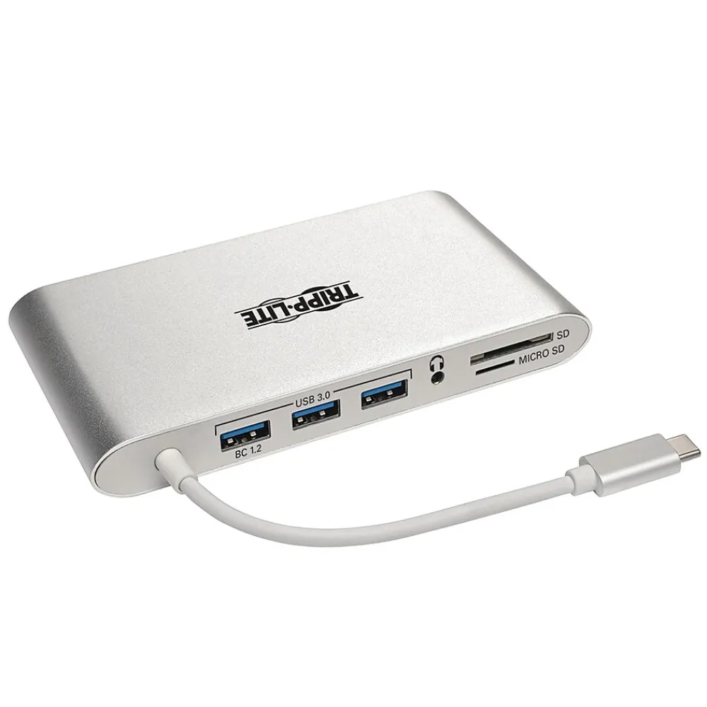 The USB-C Docking Station turns your computer, notebook or tablet into a versatile workstation. By connecting its built-in cable to your device’s USB-C port, you’ll be able to add an external display, access Gigabit Ethernet networks, transfer data, display video and more. The Mini DisplayPort and HDMI ports support UHD video resolutions up to 3840 x 2160 at 30 Hz. The VGA port supports HD video resolutions up to 1920 x 1200, including 1080p, at 60 Hz.