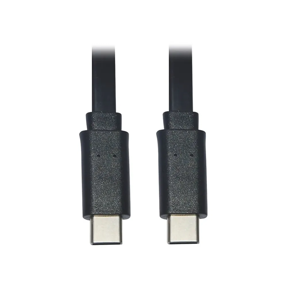 This USB sync/charge cable (M/M) connects your smartphone, tablet, MacBook Pro, Windows laptop or other USB-C device to the USB-C port on a computer, docking station or wall charger. It supports power output up to 3 amps (60 watts), which is sufficient for fast charging and powering most mobile devices. It also simultaneously synchronizes and transfers data at USB 2.0 speeds up to 480 Mbps. Very flexible for convenient on-the-go connections, this flat cable avoids nasty tangles in your backpack or laptop bag. Its advanced flat design allows easy rolling for tangle-free storage. Plus, it bends easily for connecting to devices in tight spaces or around obstacles. Unlike traditional USB cables that connect in only one direction, the reversible USB-C male connectors plug into a USB-C or Thunderbolt 3 port in either direction for an instant connection every time.