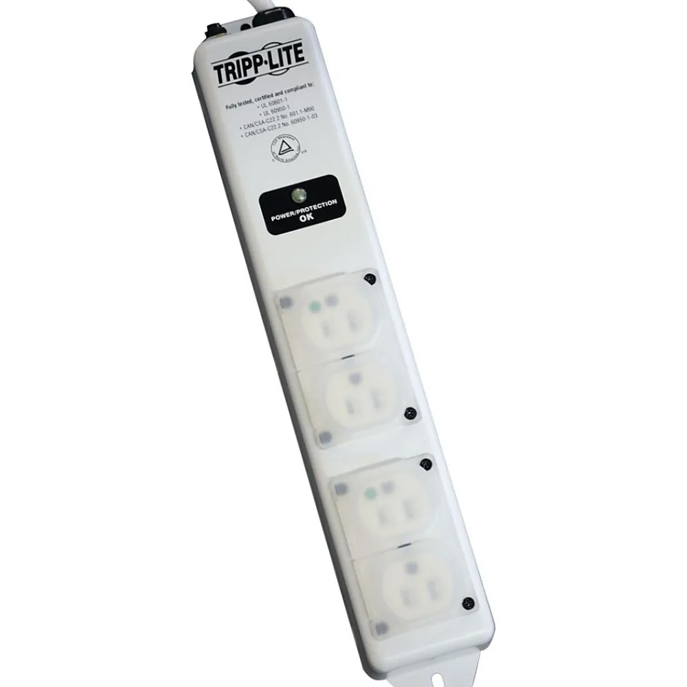 - 4 NEMA 5-15R-HG hospital-grade outlets provide consistent power