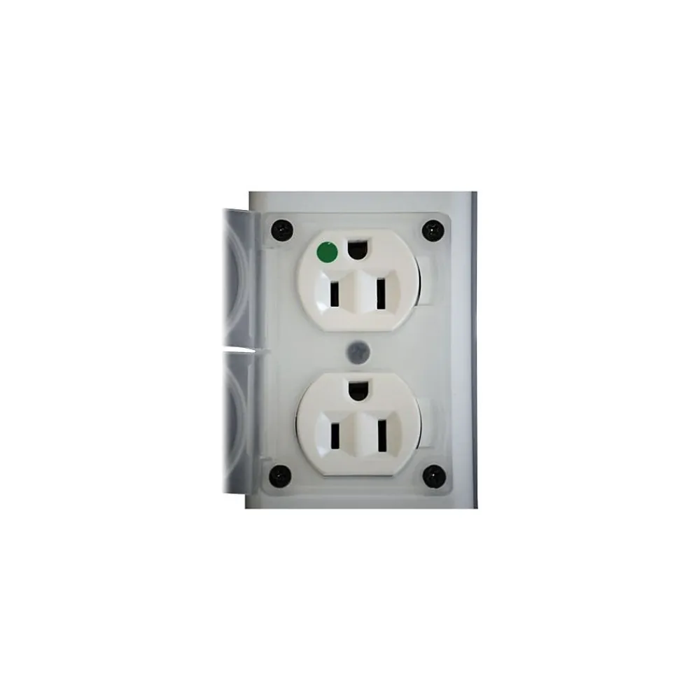 - Integrated locking outlet safety covers block access to unused outlets