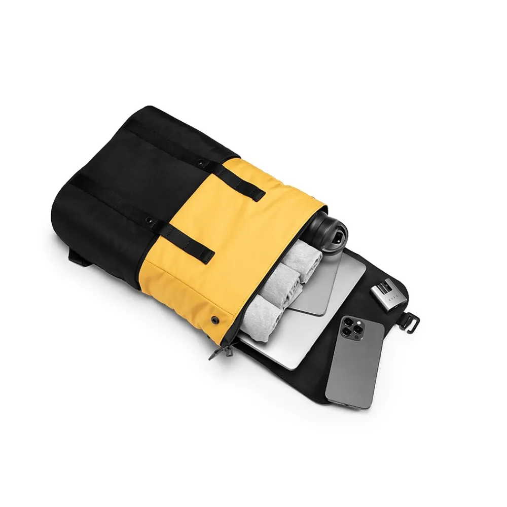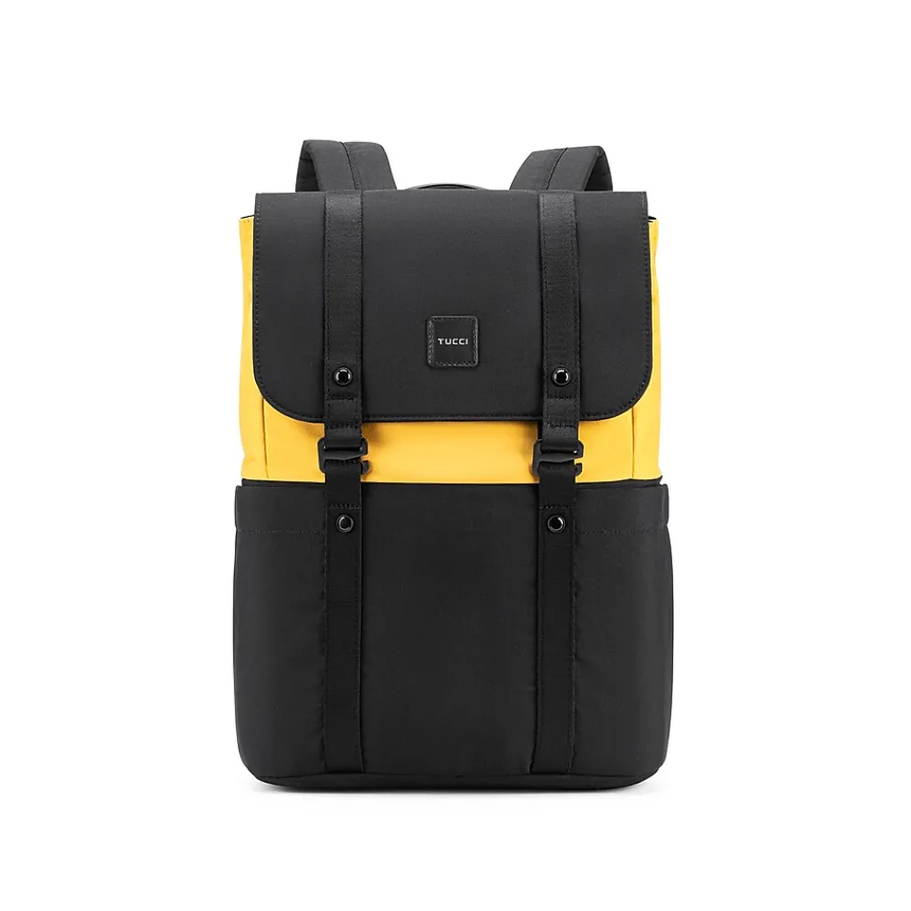 This versatile backpack is crafted from water-resistant woven fabric, providing excellent protection against the elements.