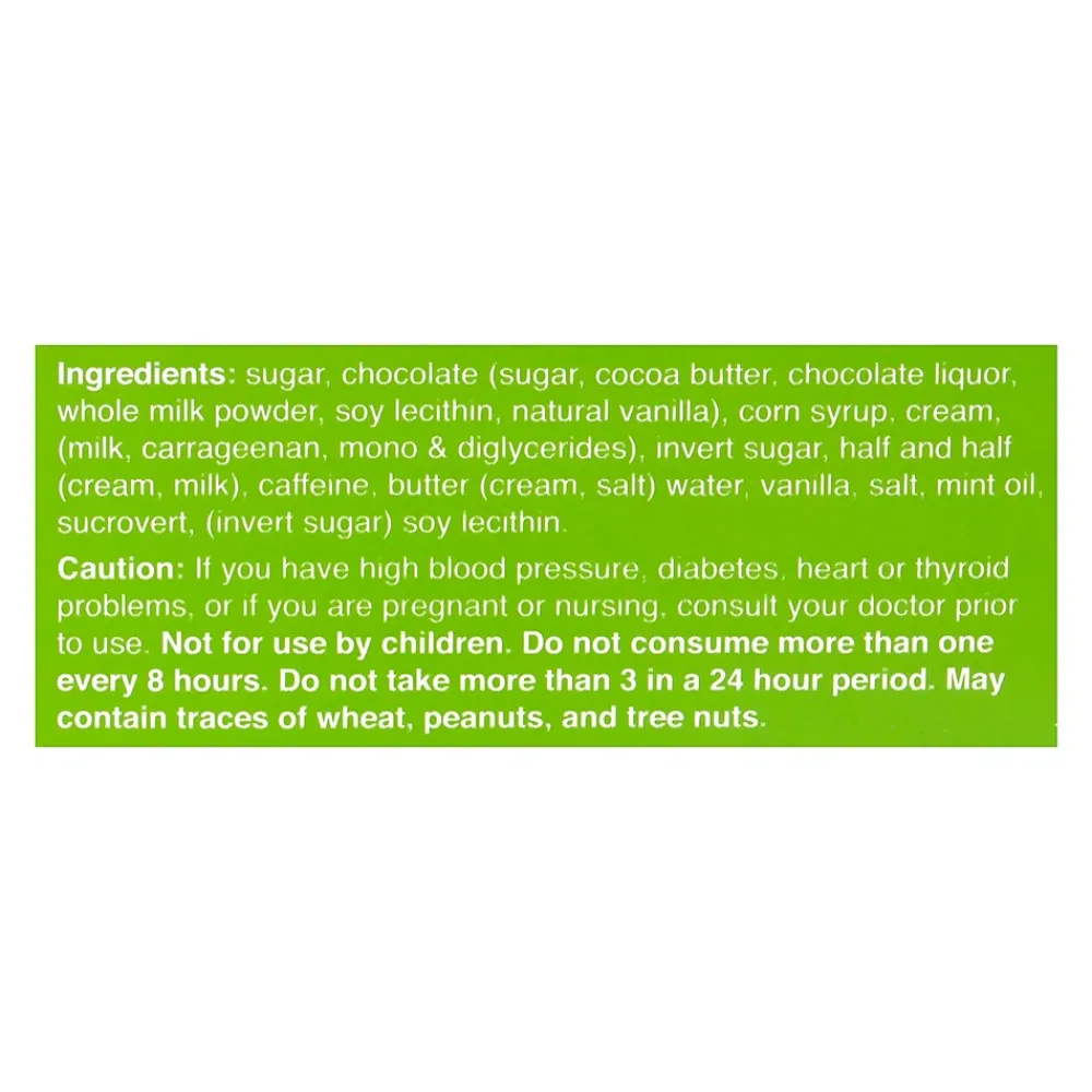 Ever wish you could carry your coffee anywhere with you, having it at the ready whenever you want? Ever wish you could eat your coffee instead of drinking it? Now you can do all this and more. Satisfy your coffee craze anytime, anywhere, with Turbo Truffle Mint Madness, the amazing energy chocolate. Do not consume more than one every 8 hours, or more than 3 in a 24 hour period.