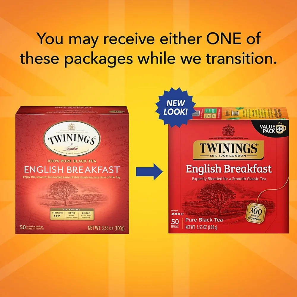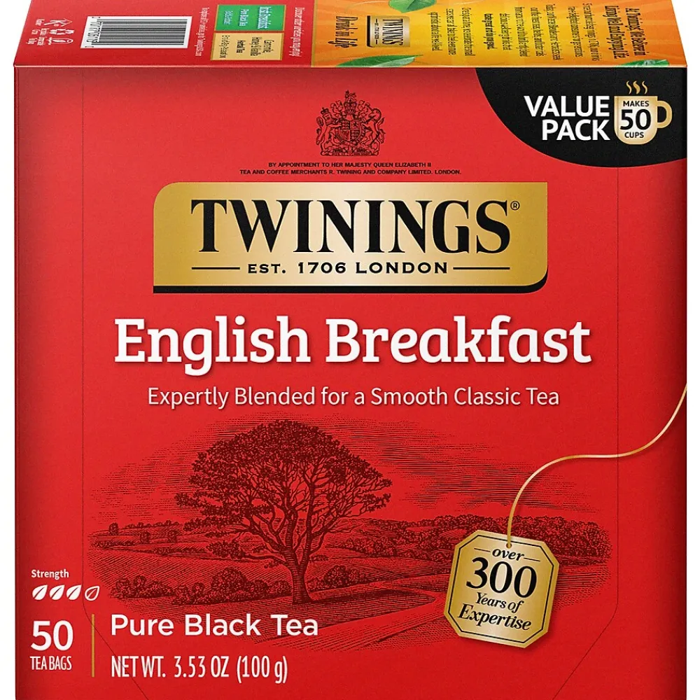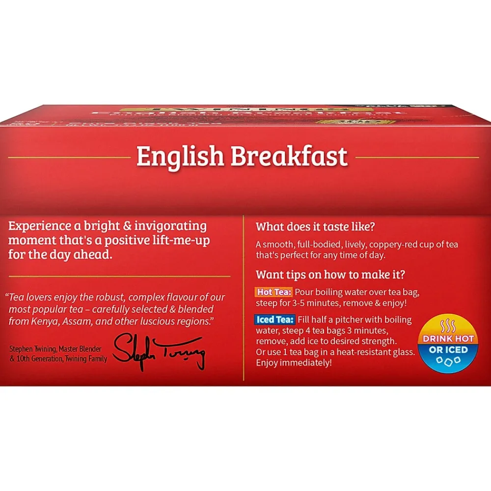The Twinings English Breakfast well-balanced blend includes some of the finest teas, each with its own unique characteristics. Teas from Kenya provide the briskness and coppery-red color, while the tea from Assam gives full body and flavor. The robustness from these regions is complemented by softer teas from other regions. The combination yields a complex, full-bodied, and lively cup of tea that is perfect for any time of the day.
