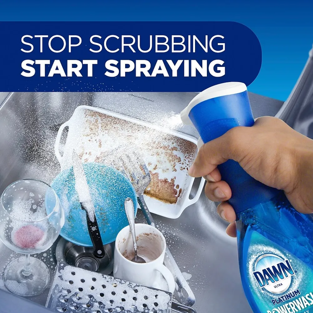 The Dawn Ultra Platinum Powerwash dish spray is the faster, easier way to clean as you go. The spray-activated suds cut through grease on contact, without water, for a five times faster grease cleaning (versus non Ultra Dawn). Just spray, wipe, and rinse to stay ahead of the mess, and get done faster. Dawn Ultra Platinum Powerwash is great for all your dishes with its unique spray technology, even your hard-to-reach items, such as blenders and baby bottles, are easy to clean. For tough messes, allow the suds to sit for a few minutes, then just wipe and rinse away all the grease and suds.