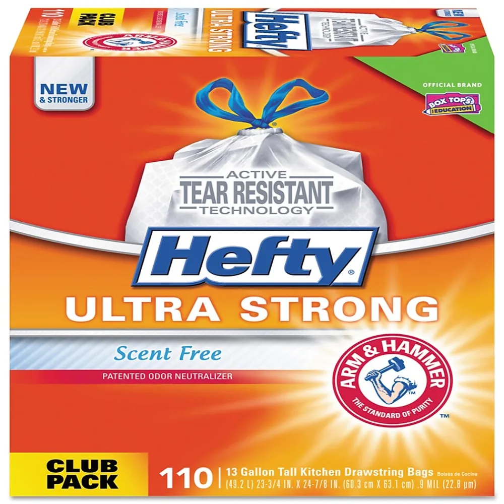 Ultra Strong 13 Gallon Kitchen Trash Bag, 23.75″ x 24.88″, Low Density, 0.9 mil, White, 110 Bags/Box (PCTE84570)<Hefty Outlet