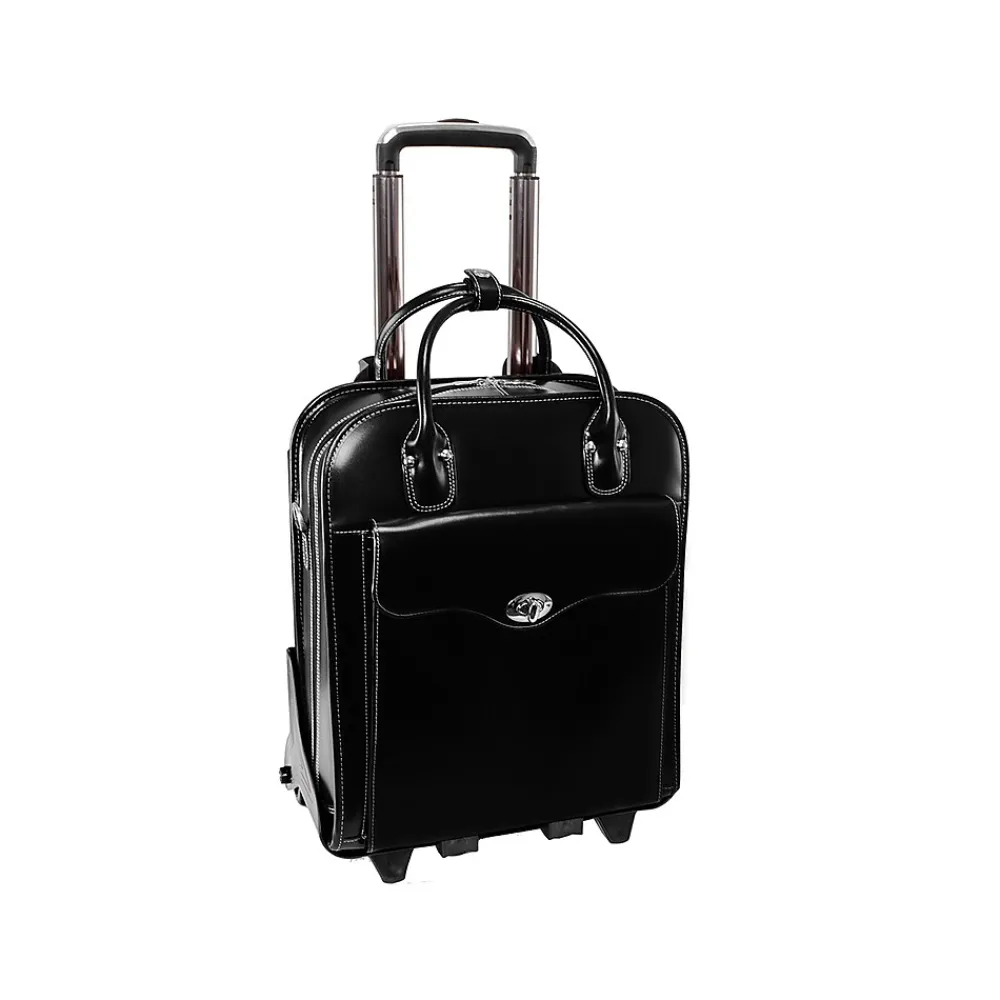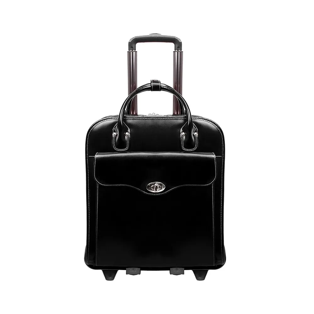 You will go, you will see, you will conquer with this McKleinUSA Melrose W Series briefcase by your side, of course. Its patented two-in-one detachable wheel and handle system with vertical, Euro-influenced design allows for easier maneuvering in tight, crowded areas. The narrow design also benefits users who travel on planes with the ability to maneuver down aisles without having to lift the bag. Features a stylish, flap-over front pocket for files and accessories with a secure clasp and twist lock. Comes with a secure, centered zipper pocket within the main compartment. The main compartment features a padded laptop section, interior organizer, interior padded zipper pocket for tablet cases, and space for files. Its versatility allows you to adapt so you can continue on your journey apace.