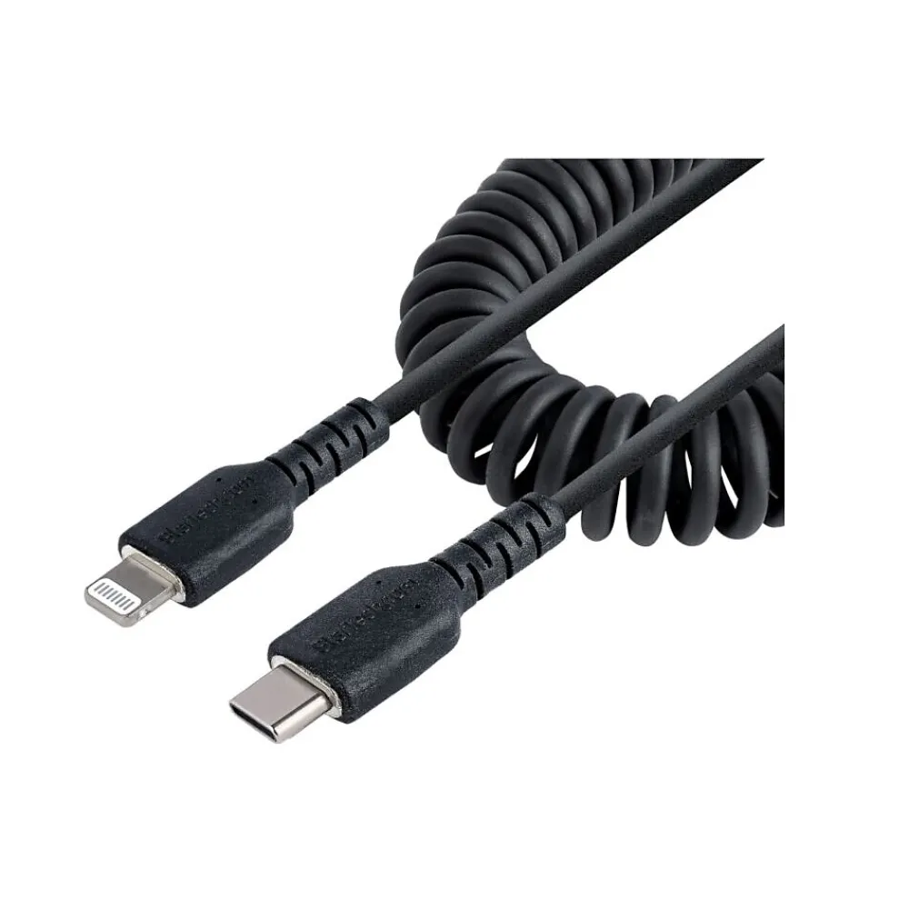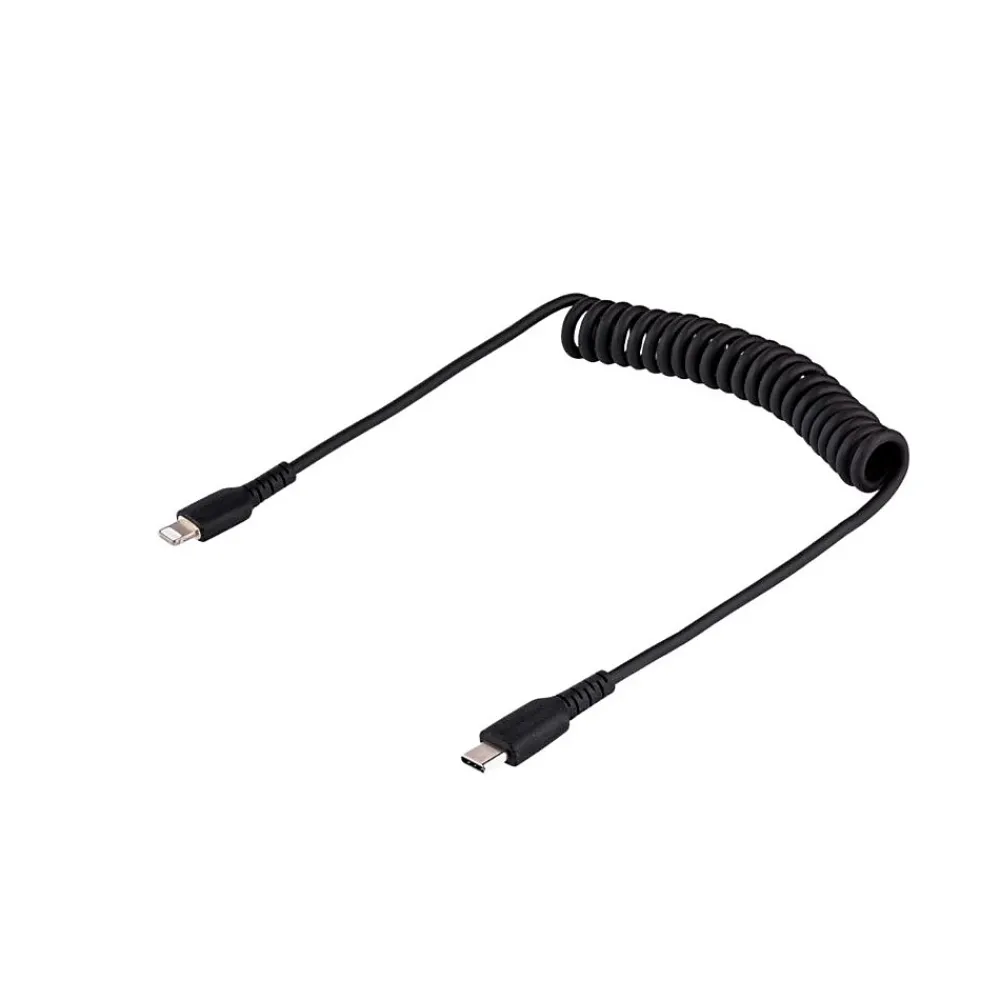 - This coiled Lightning to USB C cable can withstand the daily demands of charging and syncing your mobile devices. It contracts to 1.2ft (38cm) making it compact and convenient to store