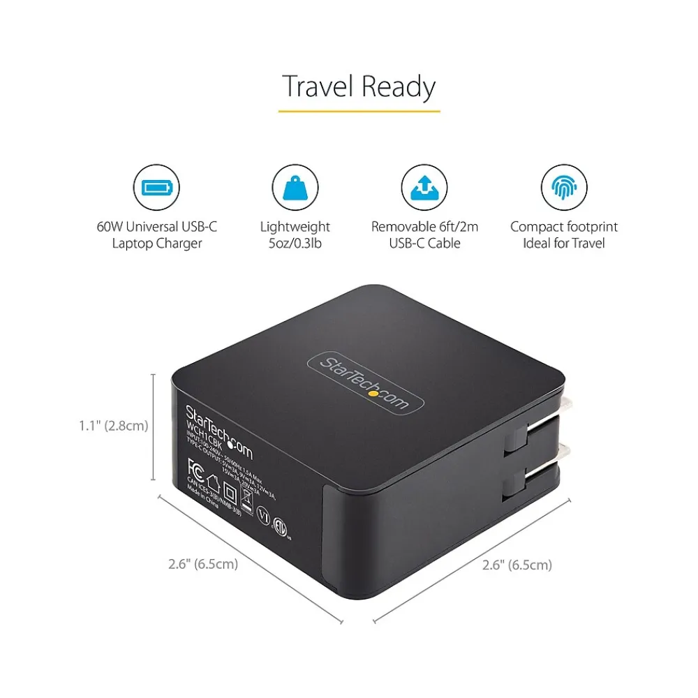 - This USB-C Power Delivery charger provides next-generation technology that can fast charge your USB Type-C phone, tablet, or laptop that requires up to 60W
