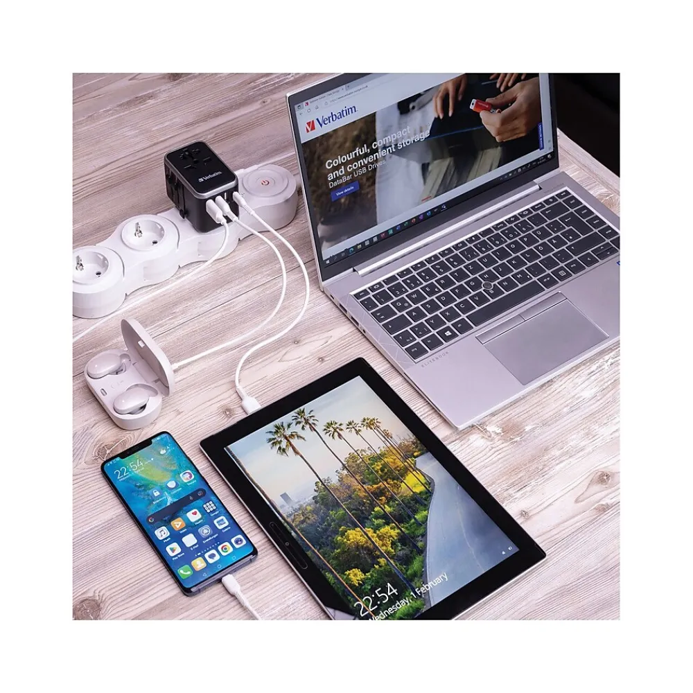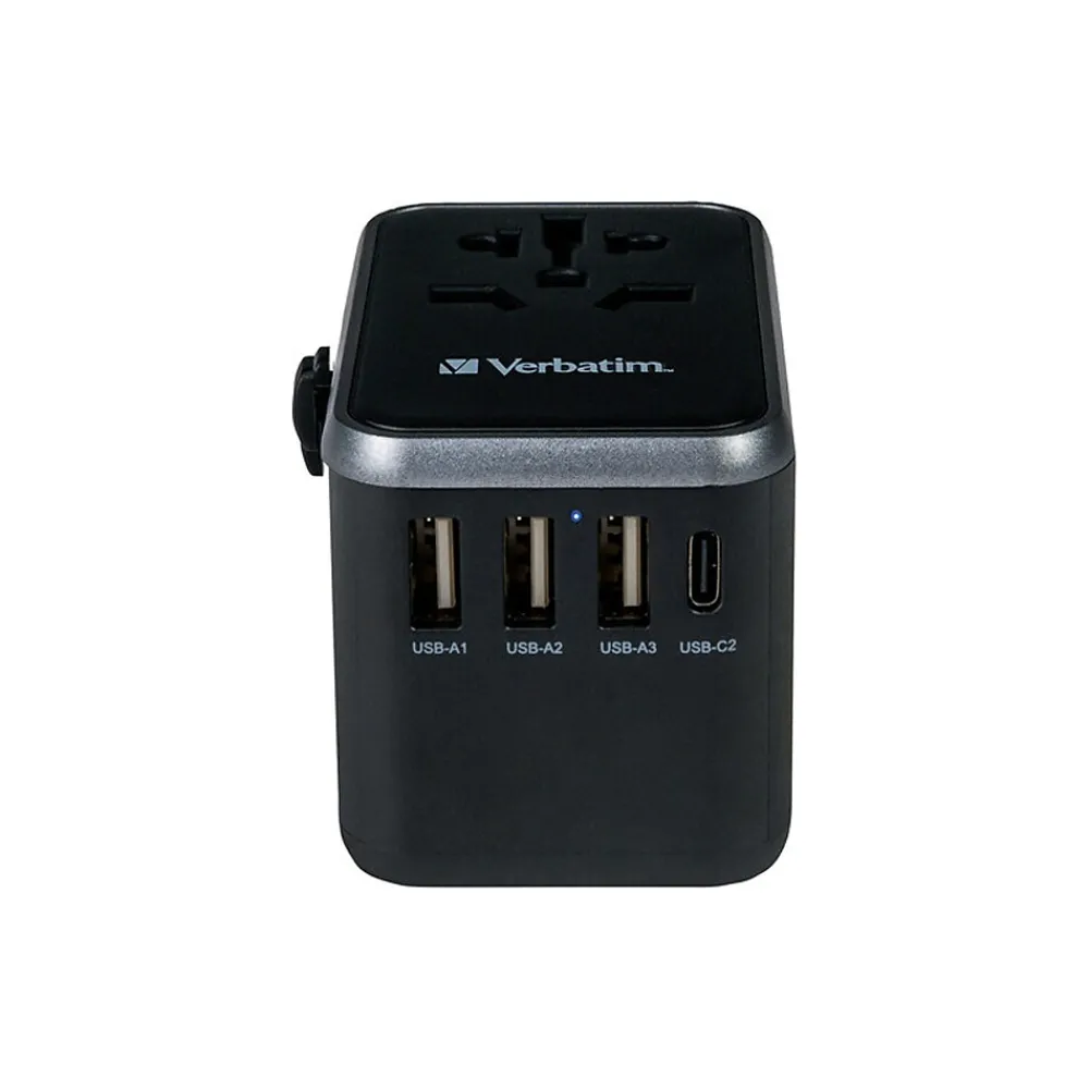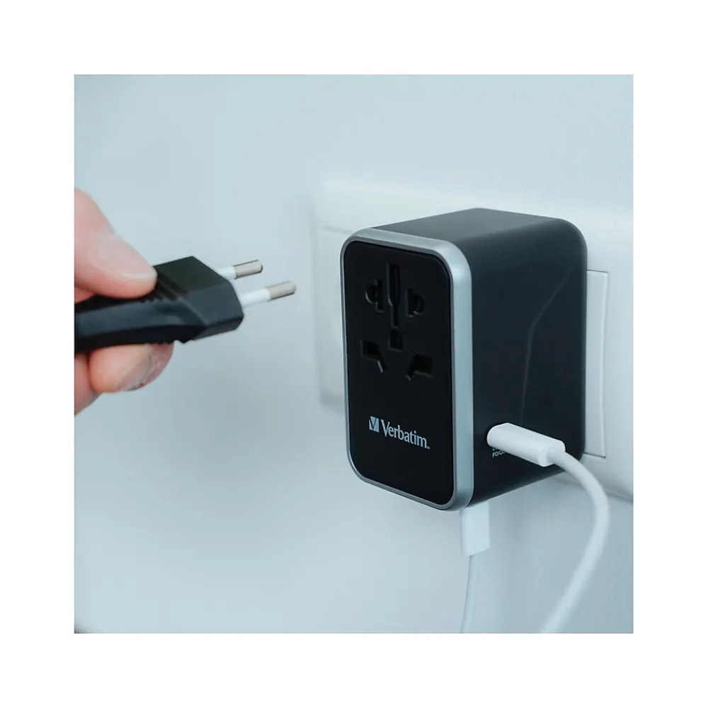 The Verbatim UTA-04 universal travel adapter can be used in more than 180 countries: take it everywhere with you and never be out of power. This world-to-world multi-plug allows you to connect to any local power supply around the world and recharge your power-hungry devices, such as laptops and camera batteries. The USB Type-C and USB Type-A ports on the bottom can charge all your USB devices including smartphones, Bluetooth speakers, tablets, power banks, and Kindles.