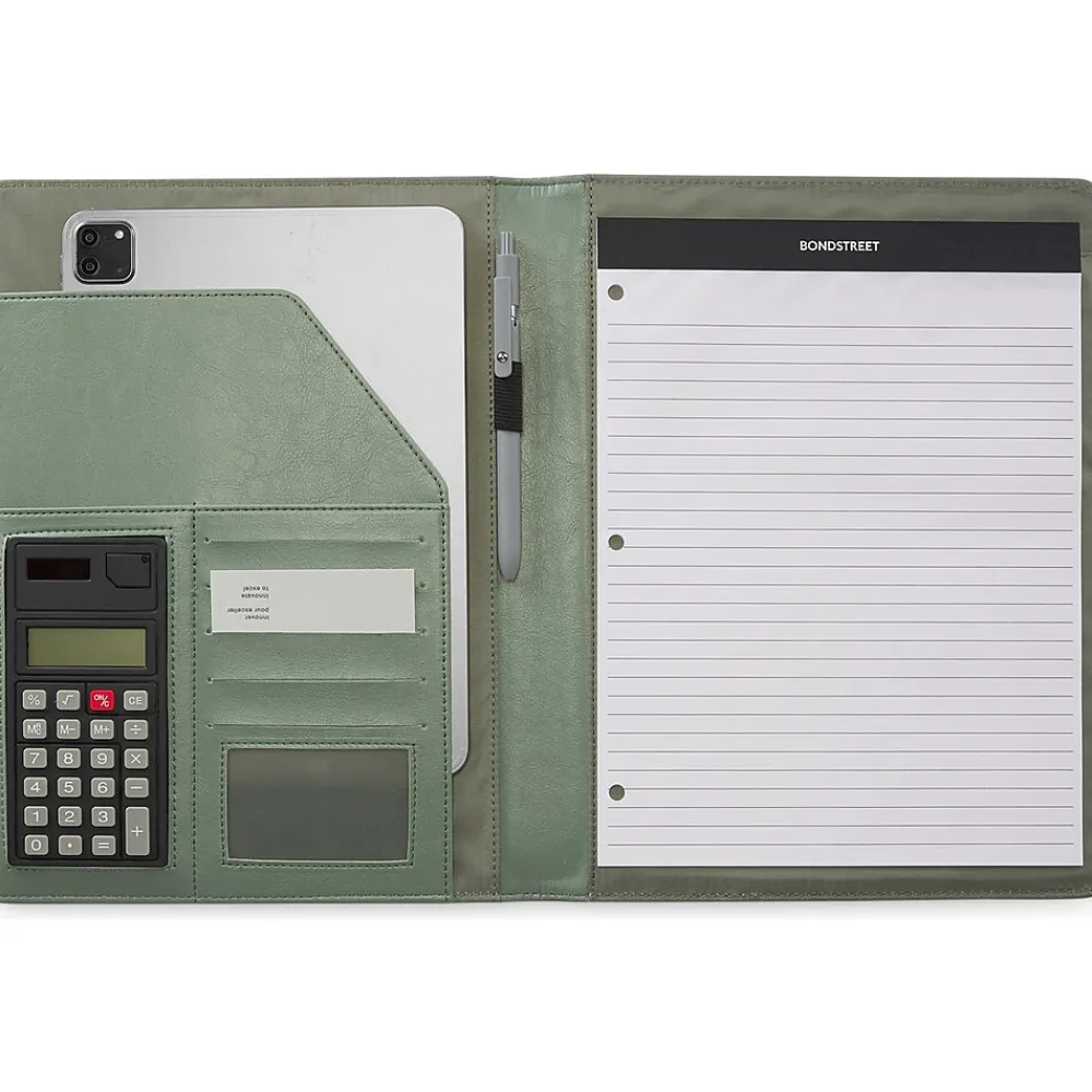 - Practical pen holder and integrated calculator for added convenience
