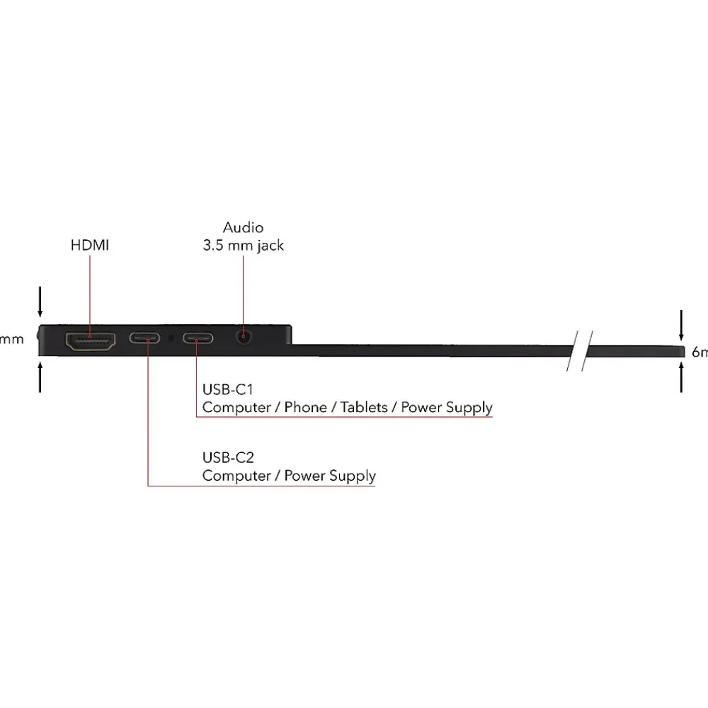 - Package includes: monitor, 3.28′ USB Type-C to USB Type-C cable, 5′ HDMI cable, 4′ USB Type-C to USB Type-A cable, USB Type-A to AC power adapter, power plug (UK), neoprene protective sleeve, quick start guide
