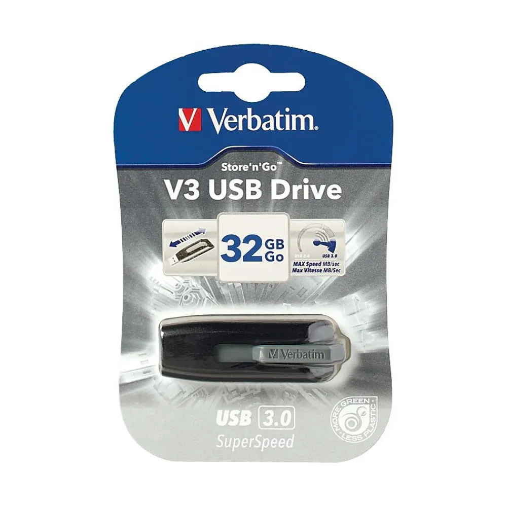 Verbatim Store ‘n’ Go V3 49173 32GB USB 3.0 Flash Drive, Black/Gray