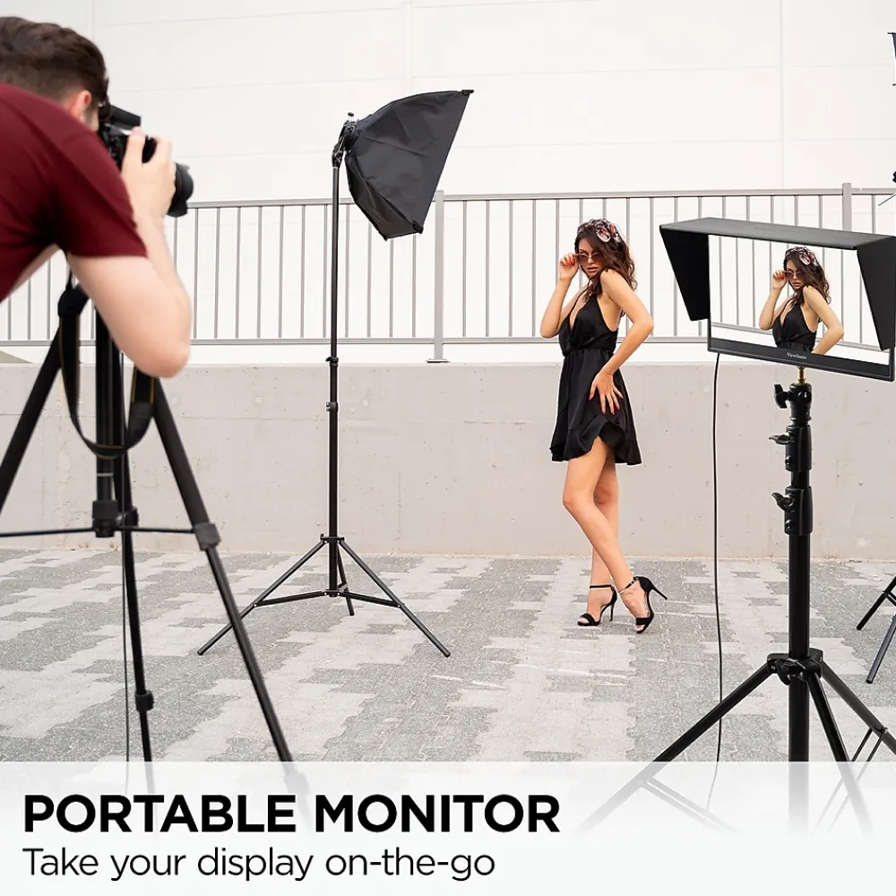 - VERSATILE MONITOR: Comes with ergonomic height-adjustable stand and tripod mount as well as monitor hood and screen cover