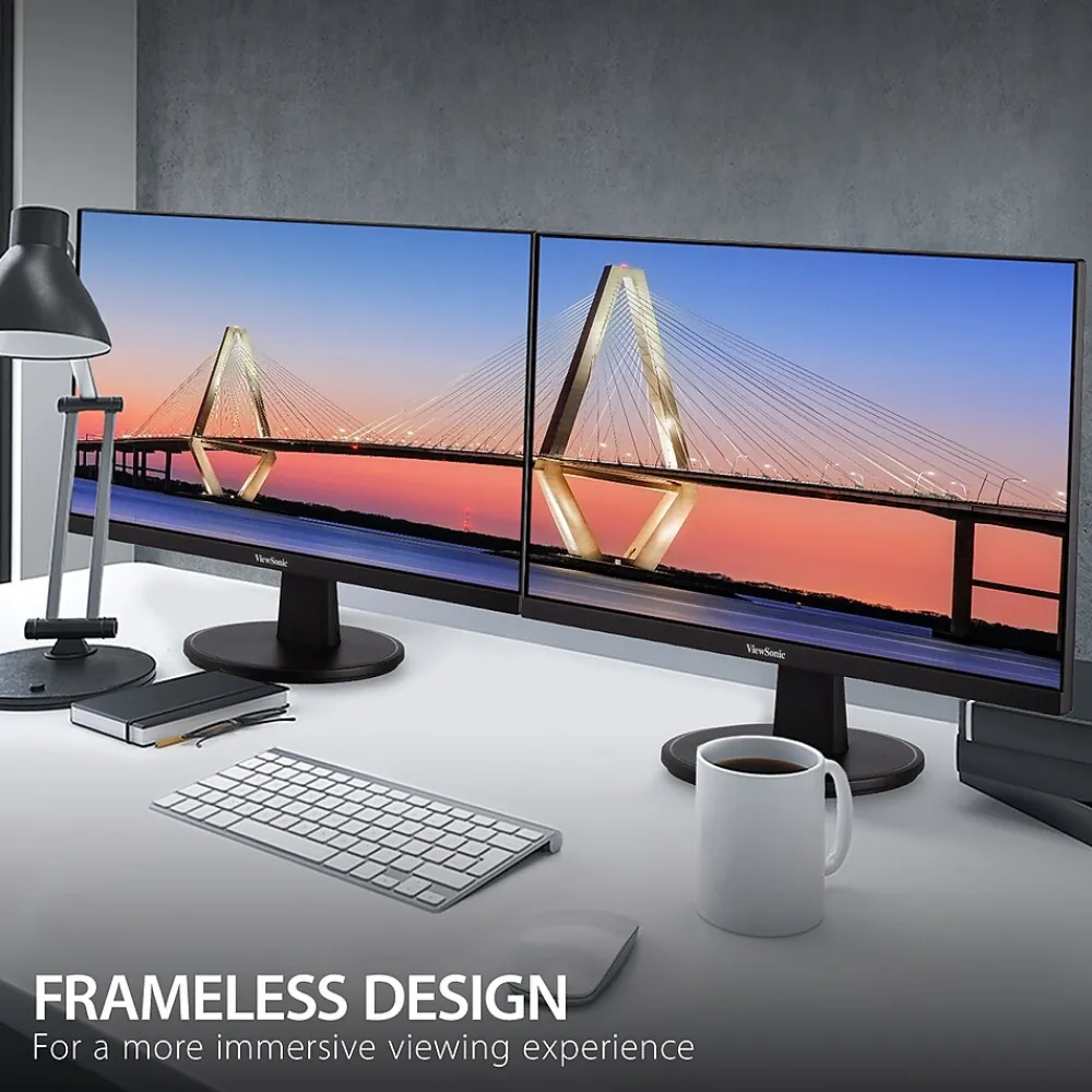 With flexible connectivity, wide-angle viewing, and amazing screen performance, the ViewSonic VA2747-MH delivers solid multimedia features and a sleek design at a great value. Featuring frameless MVA panel technology, the VA2747-MH delivers stunning brightness and contrast at nearly any viewing angle. A minimalistic design, edge-to-edge screen, and frameless bezel make this an ideal monitor for nearly seamless multi-screen setups. Whether for working at the office, or enjoying entertainment at home, the VA2747-MH features an HDMI port and an included HDMI cable for flexible connectivity to PCs, laptops and gaming consoles. A three-year limited warranty, along with one of the industry’s best pixel performance policies, makes the VA2747-MH a great overall value choice.