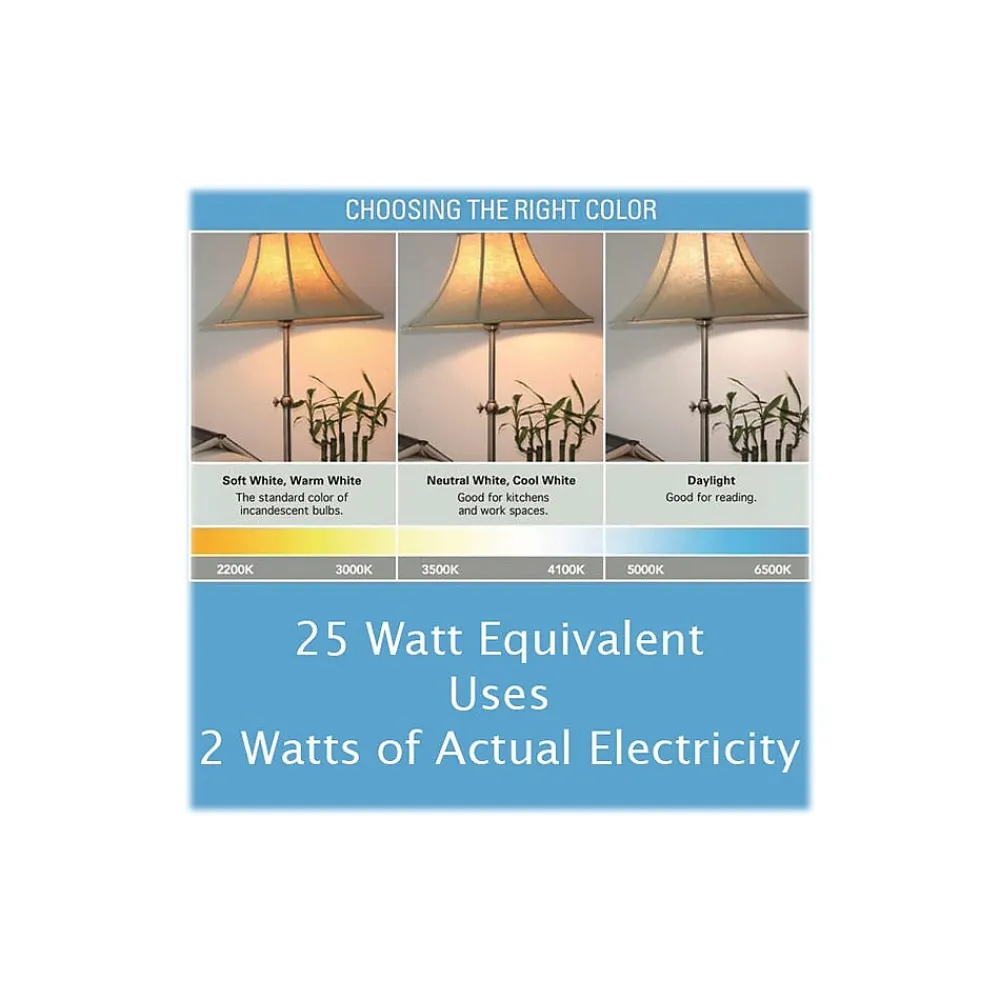 The Viribright 25W equivalent LED globe vanity-style light bulb provides a perfect blend of value and quality. This bulb can be used in a variety of applications, from ceiling fans to bathroom vanities, making it a perfect choice for your everyday vanity lighting needs. The bulb provides a beautiful white light using only 2W of energy.