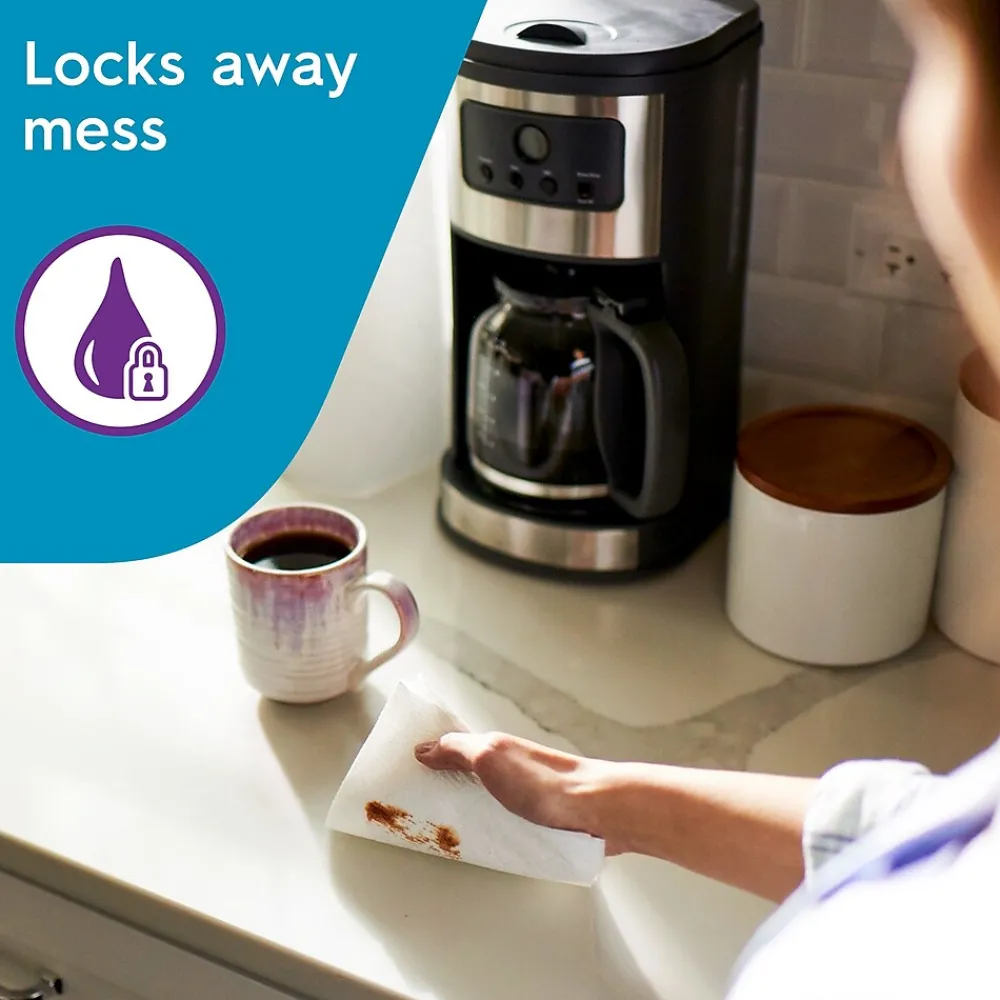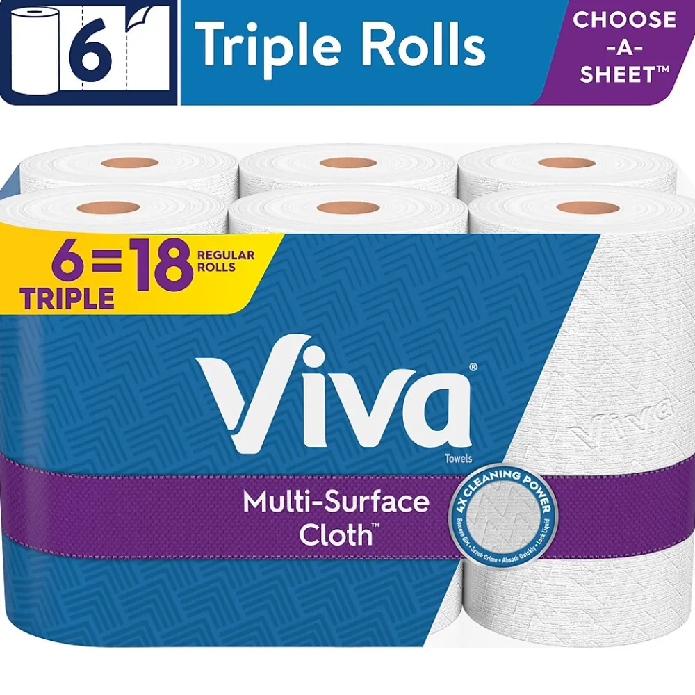 Viva Choose-A-Sheet multi-surface cloth paper towels are designed with a unique texture to lift and trap mess on the kitchen countertop, bathroom surfaces, and all the rooms in-between. Two absorbent layers soak up the mess and clean metal, granite, glass, and wood, helping you maintain an exceptionally clean home every day. The pack includes six triple rolls, with 165 sheets per roll and perforations that let you choose the sheet size for your task.