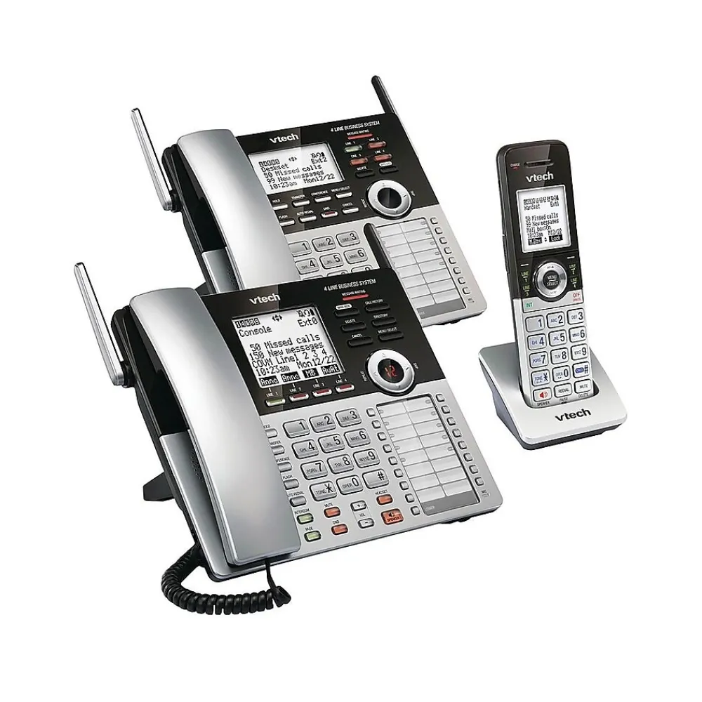 Stay connected with business and personal acquaintances with this phone bundle. The system supports up to four lines, which is ideal for office use, and it has an integrated answering system and caller ID, so you never miss important calls. This Vtech office phone system bundle has a full-duplex speakerphone for hands-free conversations.