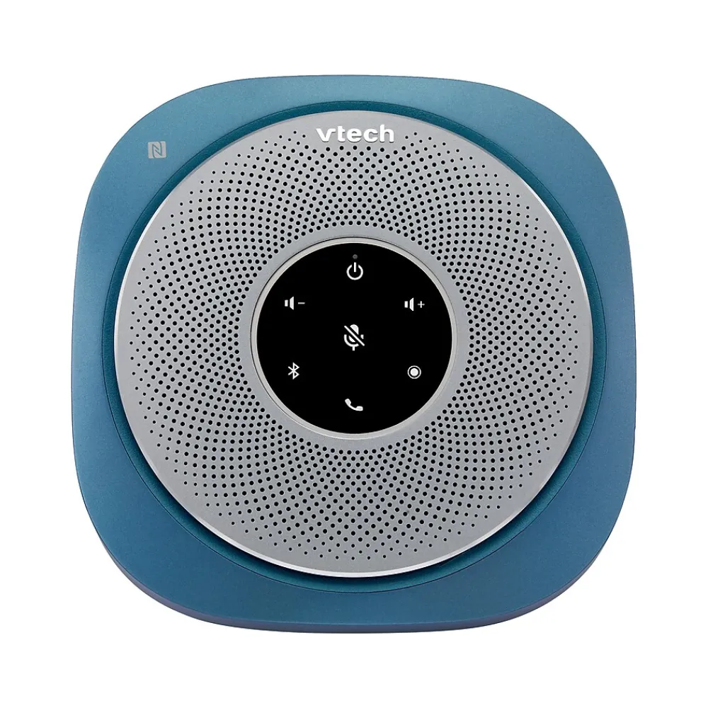 The VTech VCS601 Bluetooth conference speakerphone offers quick and easy connection to your smartphone, tablet, or laptop to meet your communication needs. The speakerphone includes six microphones to provide true 360-degree coverage to ensure users are heard from every angle and distance, while the echo cancellation helps eliminate background noise and ensure crisp, clear communication. The large 3W speaker provides a premium sound performance for listening to music while you work or take that important audio- or videoconference call. The built-in 5200mAh battery supports up to 24 hours of talk time and doubles as a USB power bank, so you can keep your smart devices charged while on the go.