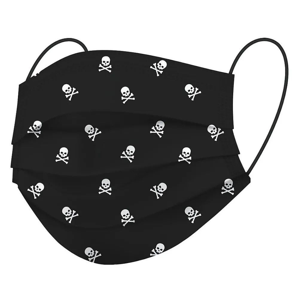 - Comes in black with a skull pattern and features an adjustable wire that runs along the top to serve as an adjustable nose clip
