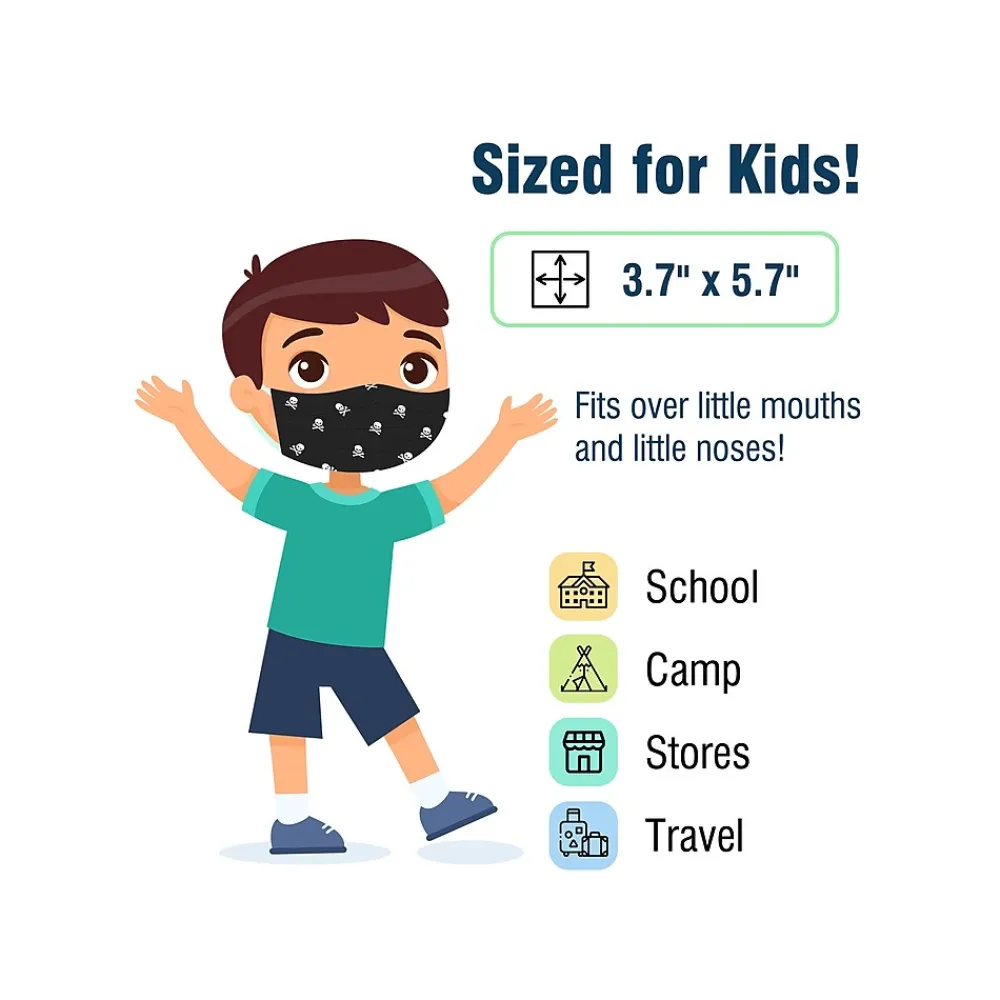- Sized at 3.7″ x 5.7″, the mask fits comfortably on boys and girls, even toddlers