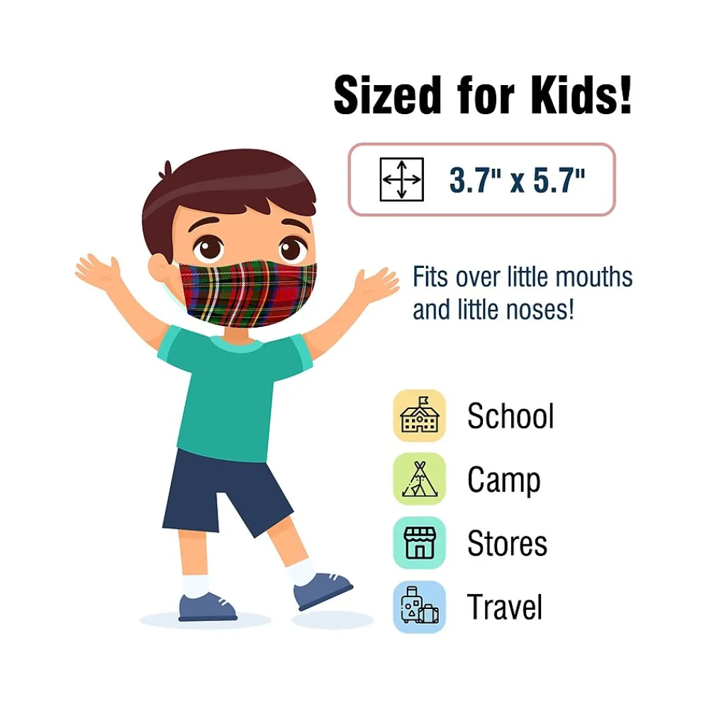 - Features plaid design; an adjustable metal wire runs along the top as a nose clip