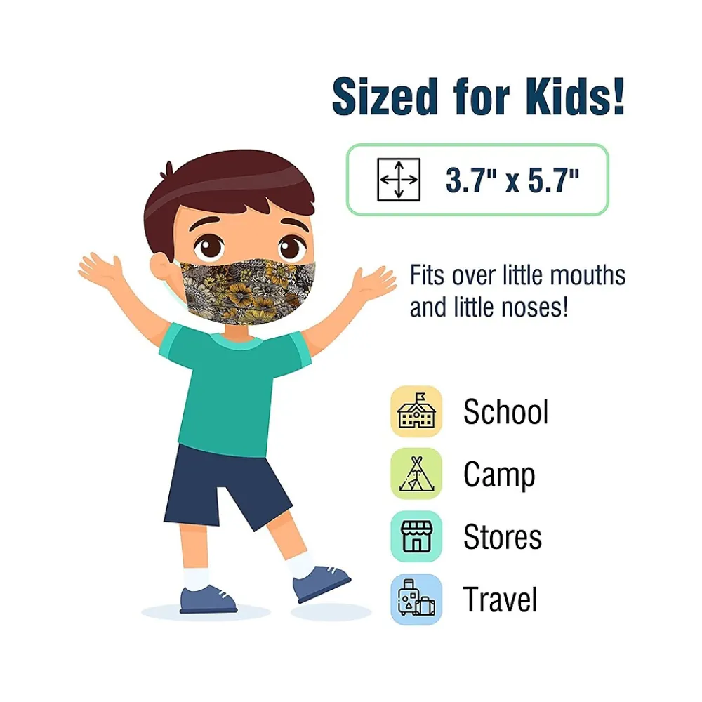 - Sized at 3.7″ x 5.7″, the masks fit comfortably on kids, even toddlers