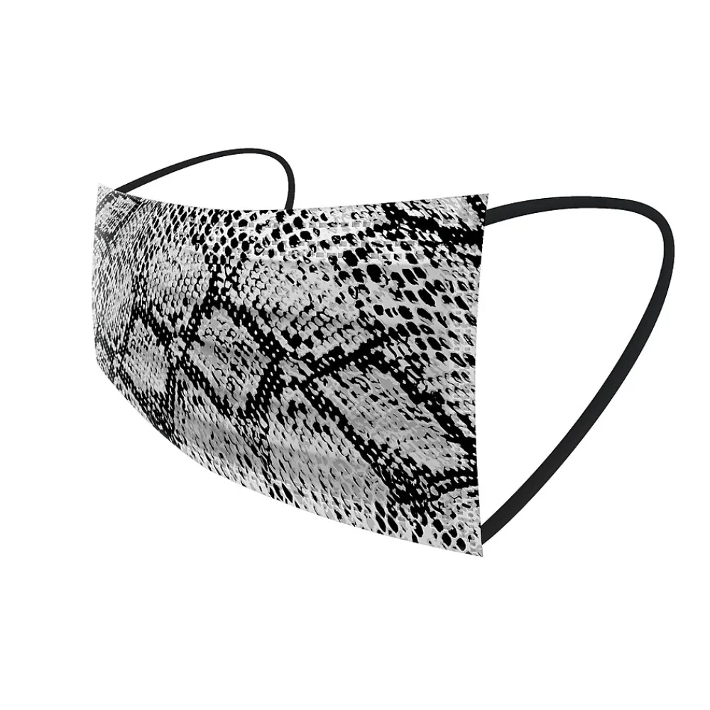 - Features flat-fold shape with elastic ear loops to keep the mask secure; comes in assorted snakeskin designs