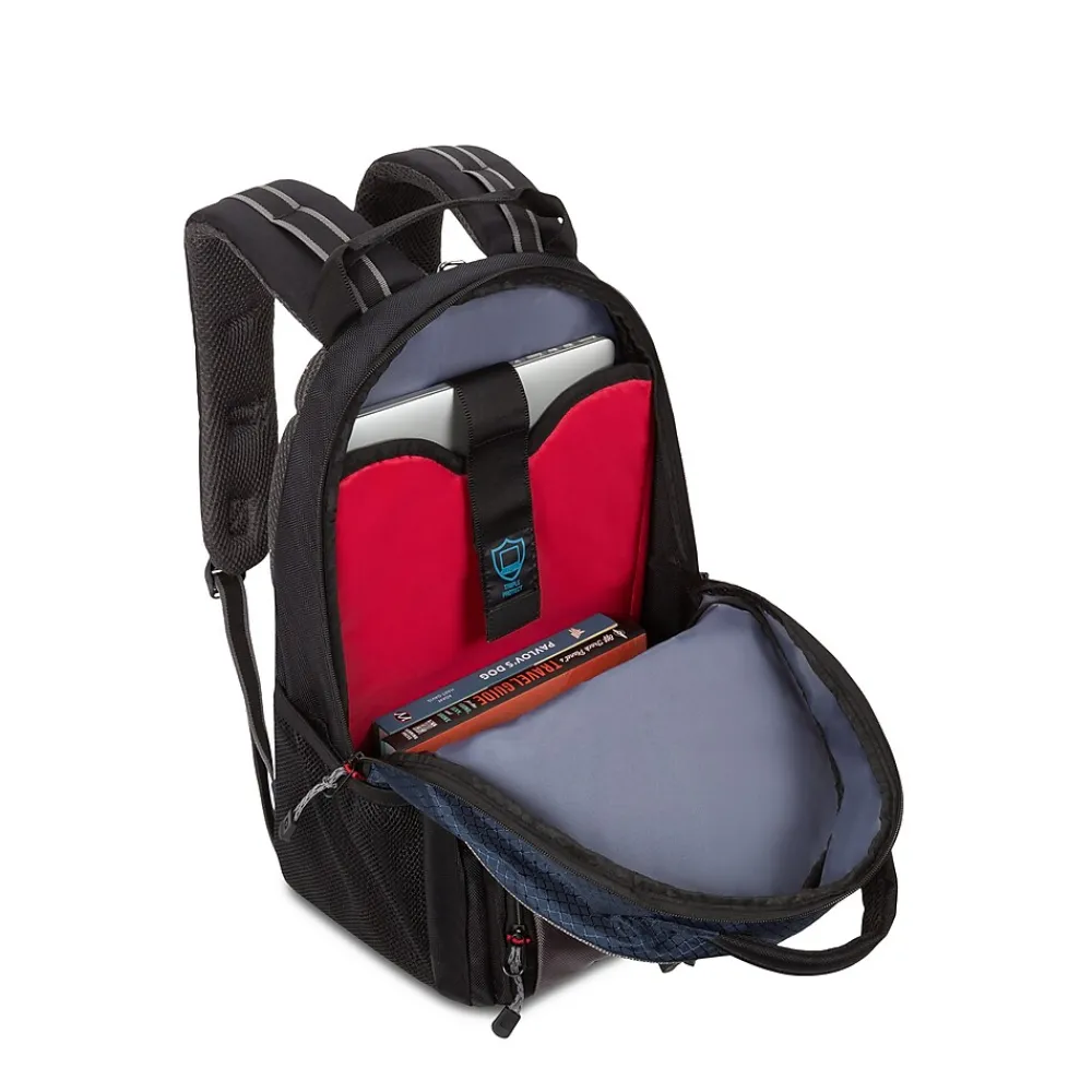 The SWISSGEAR Wenger Cobalt Laptop Backpack fuses intelligent design with a sporty vibe. The Triple Protect padded compartment stores up to a 16” laptop, and the quick pocket provides easy access to your daily essentials. Designed for an urban adventure, the Cobalt backpack is lightweight, full of storage pockets.