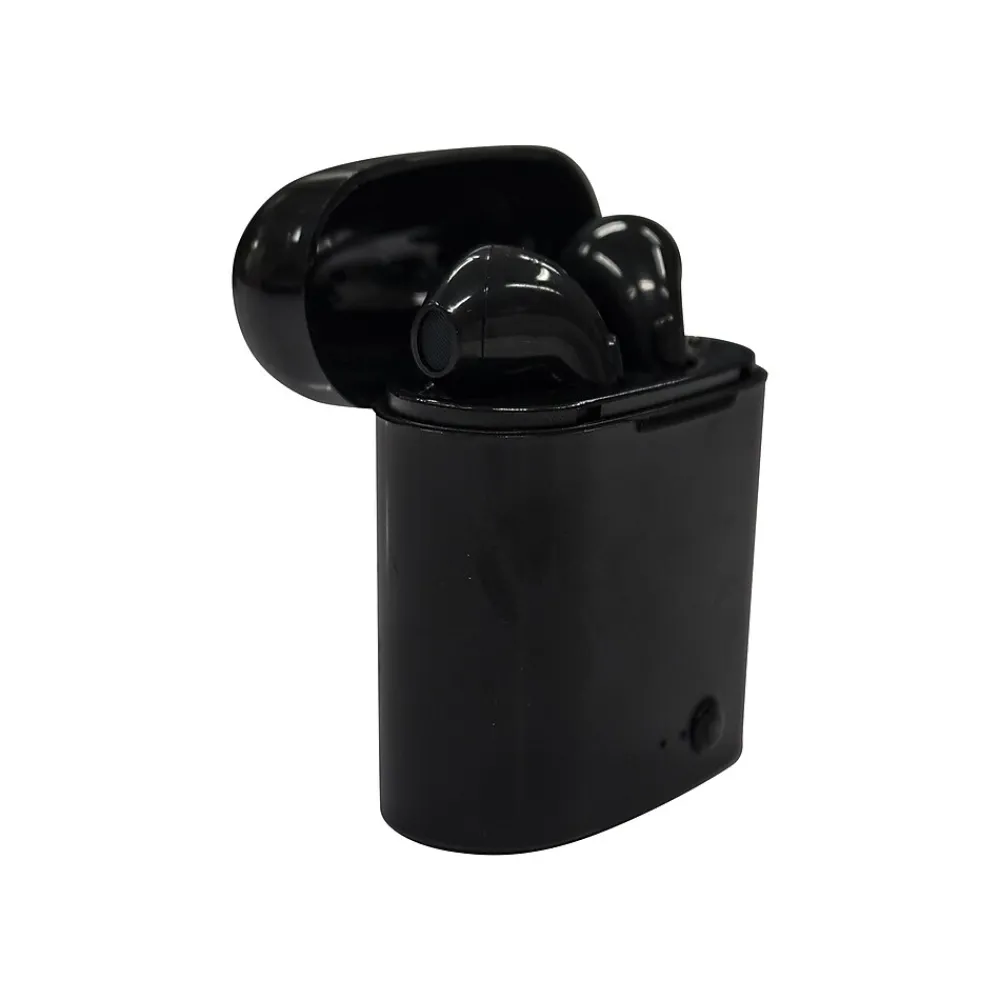 Drown out distractions and stay focused all day with these wireless stereo headphones. The eartips offer a secure, comfortable fit, and the completely wireless design lets you move about freely while you listen. Small but powerful drivers deliver impressively clear audio, which is perfect for audiophiles on the move. These Billboard wireless Bluetooth stereo headphones include a convenient charging case that extends battery life and slips easily into most pockets for portability.