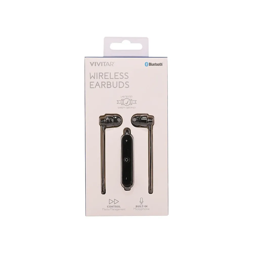 This pair of Vivitar wireless earbuds is compatible with all Bluetooth-enabled audio devices. You can easily stream and listen to music wirelessly. Any phone call can easily be answered with the built-in microphone. Features a rechargeable battery and skip/pause/rewind functionality.