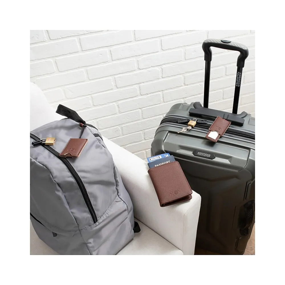 - Five-piece set includes: passport holder with RFID protection, two luggage tags with privacy cover, and two TSA-approved luggage locks