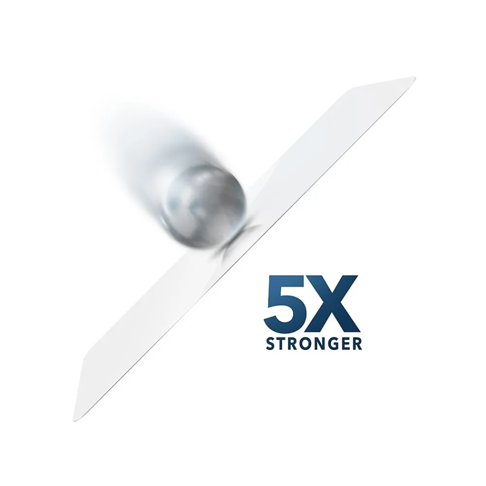 - Powerful aluminosilicate glass made with ion exchange technology that increases surface compression for greater strength and scratch resistance