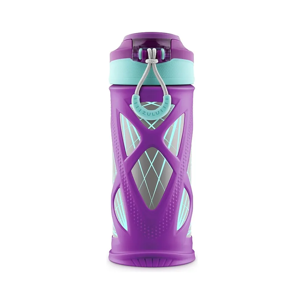 The Zulu Echo vacuum-insulated stainless steel kids’ water bottle keeps drinks cold up to 24 hours with ice. A protective silicone sleeve provides a no-slip grip. Echo’s leakproof locking lid flips open with the simple press of a button.