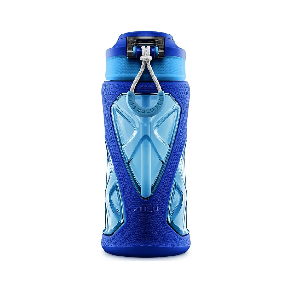 The ZULU Torque kids’ water bottle from LeapFrog features a protective silicone sleeve that provides a no-slip grip. The leakproof locking lid flips open with the simple press of a button.