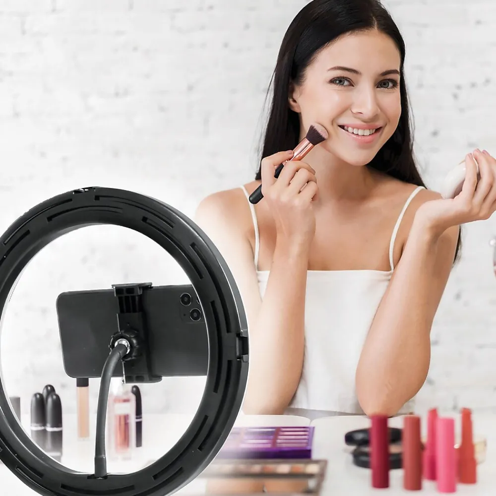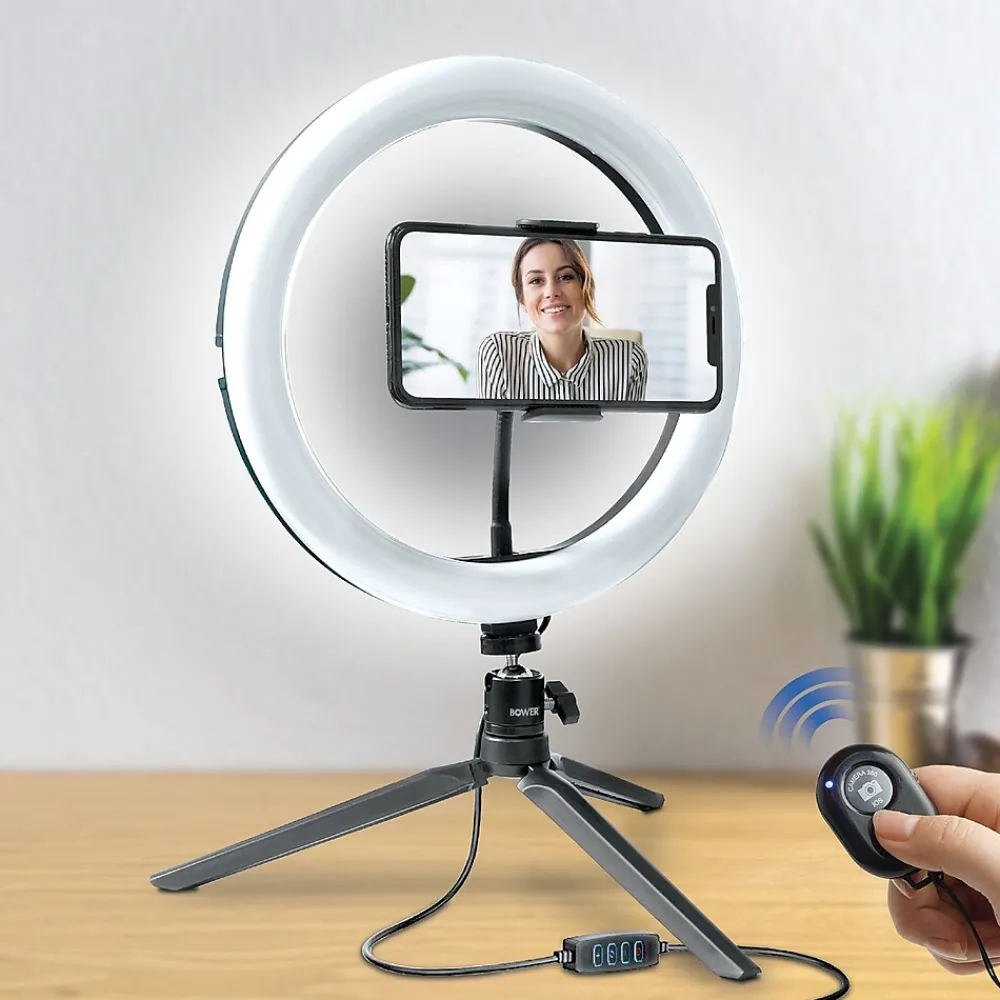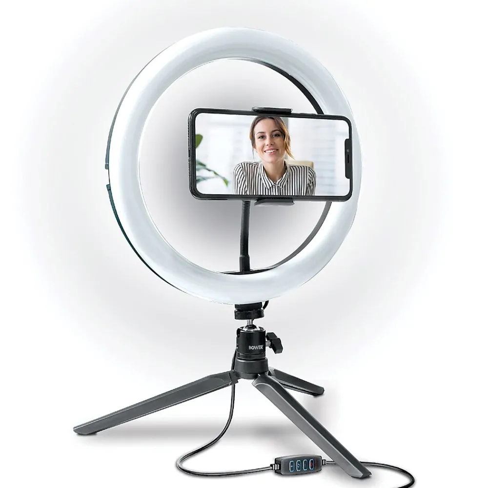 - 10 in. desktop ring light creates professional photo studio lighting for smartphones; ideal for creating live videos, vlogging, video chats, social media, health, beauty and more