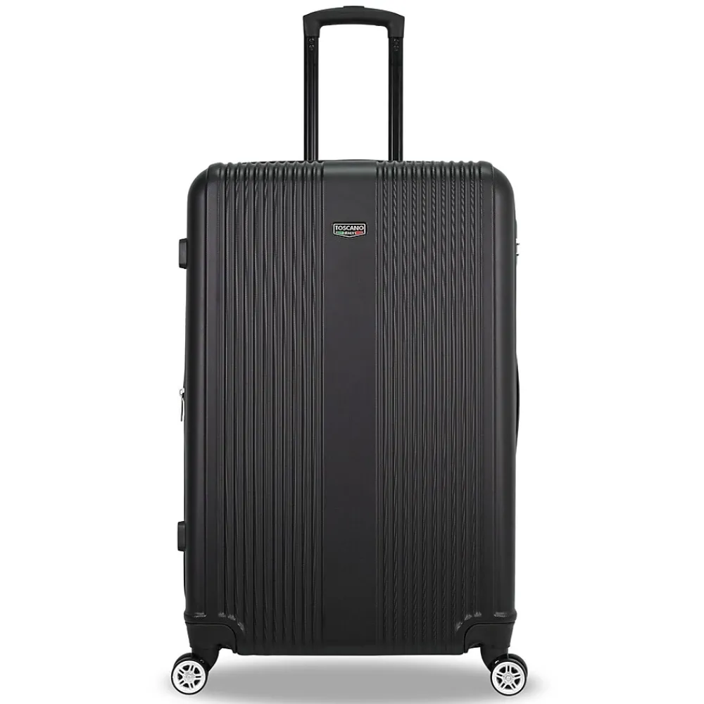 The Toscano Ottimo 2-Piece Luggage Set in Black (S0536-02PC-BLK) combines sleek design with reliable performance, making it a perfect travel companion. This set includes a compact carry-on and a spacious checked bag, each featuring a classic black, scratch-resistant hard shell that offers both durability and a refined look.Crafted from lightweight yet sturdy materials, the Ottimo set is designed for easy handling with 360-degree spinner wheels and an ergonomic telescoping handle, providing smooth, 360-degree mobility. The interiors are well-organized, featuring Toscano’s signature lining, adjustable straps, and multiple compartments to keep your belongings secure and tidy. The 2” expandable feature offers additional packing capacity, making it versatile for both short trips and longer journeys. Additionally, the built-in combination lock ensures added security for your belongings.