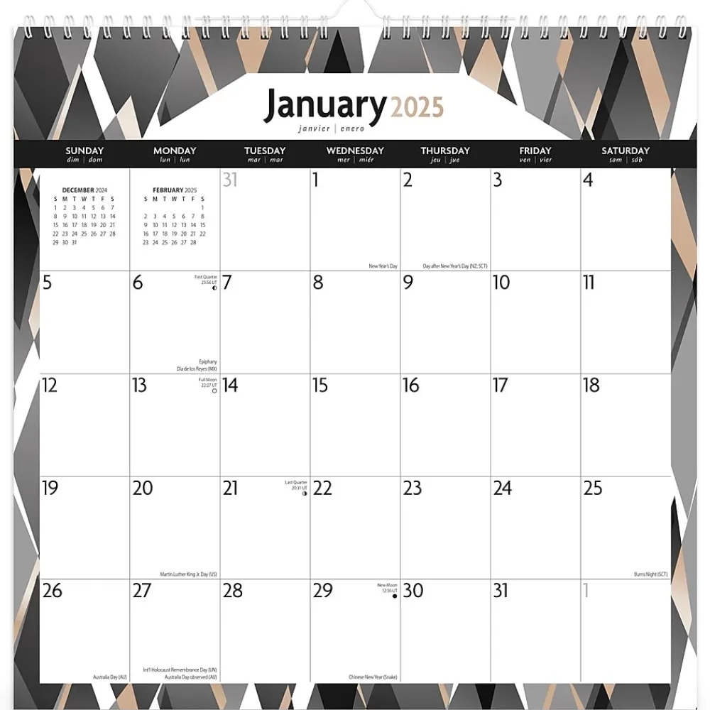 2025 Calendars|BrownTrout 2025 Ebony and Ivory 12" x 12" Monthly Wire-O Wall Calendar (9781975478490)