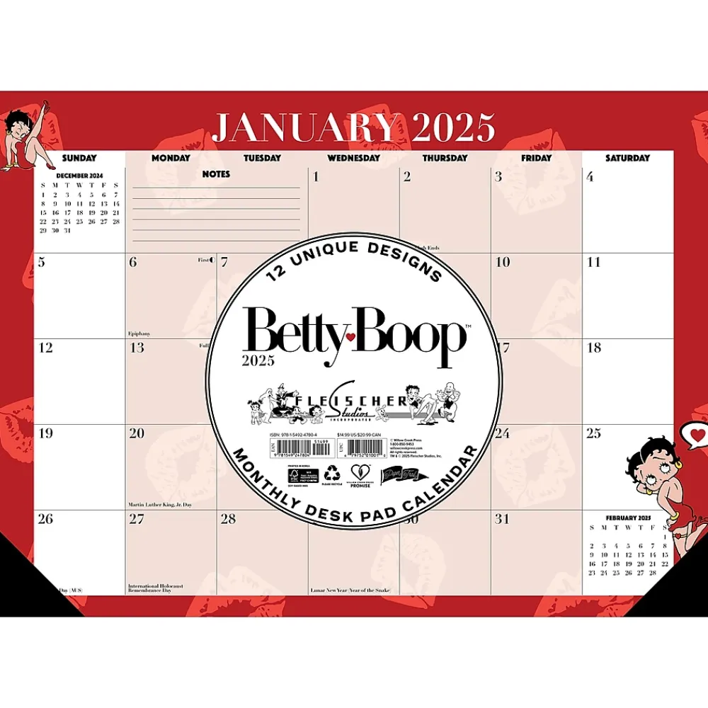 2025 Calendars|Willow Creek 2025 Betty Boop 17″ x 12″ Monthly Desk Pad Calendar (47804)