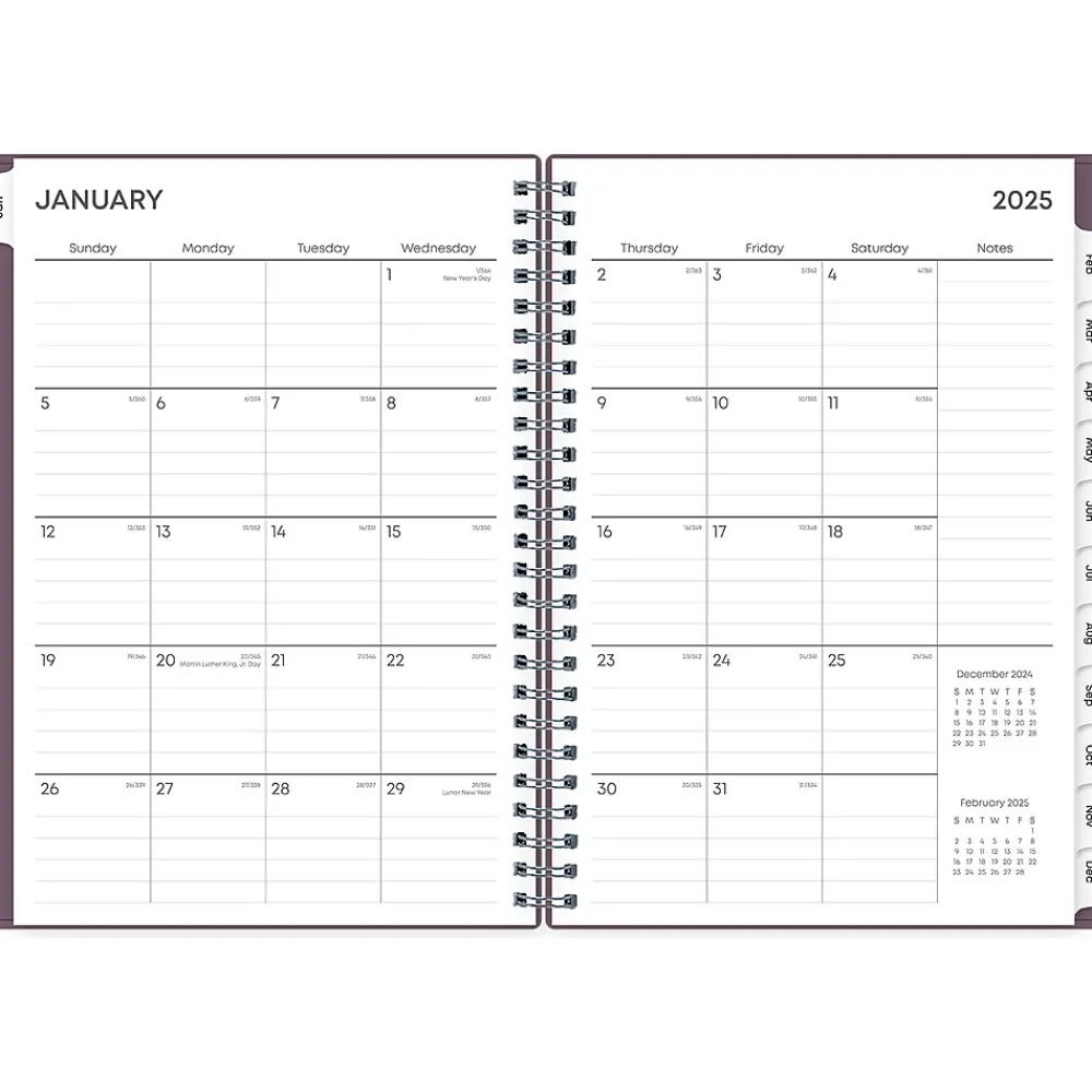 The best of both worlds: a planner with a built-in notebook. This all-in-one planner includes 30 lined pages for notes, weekly pages, and tabbed monthly views. Track dates, goals, and feedback in one convenient place. This Blue Sky planner offers plenty of room for your schedule and a sleek, professional look.
