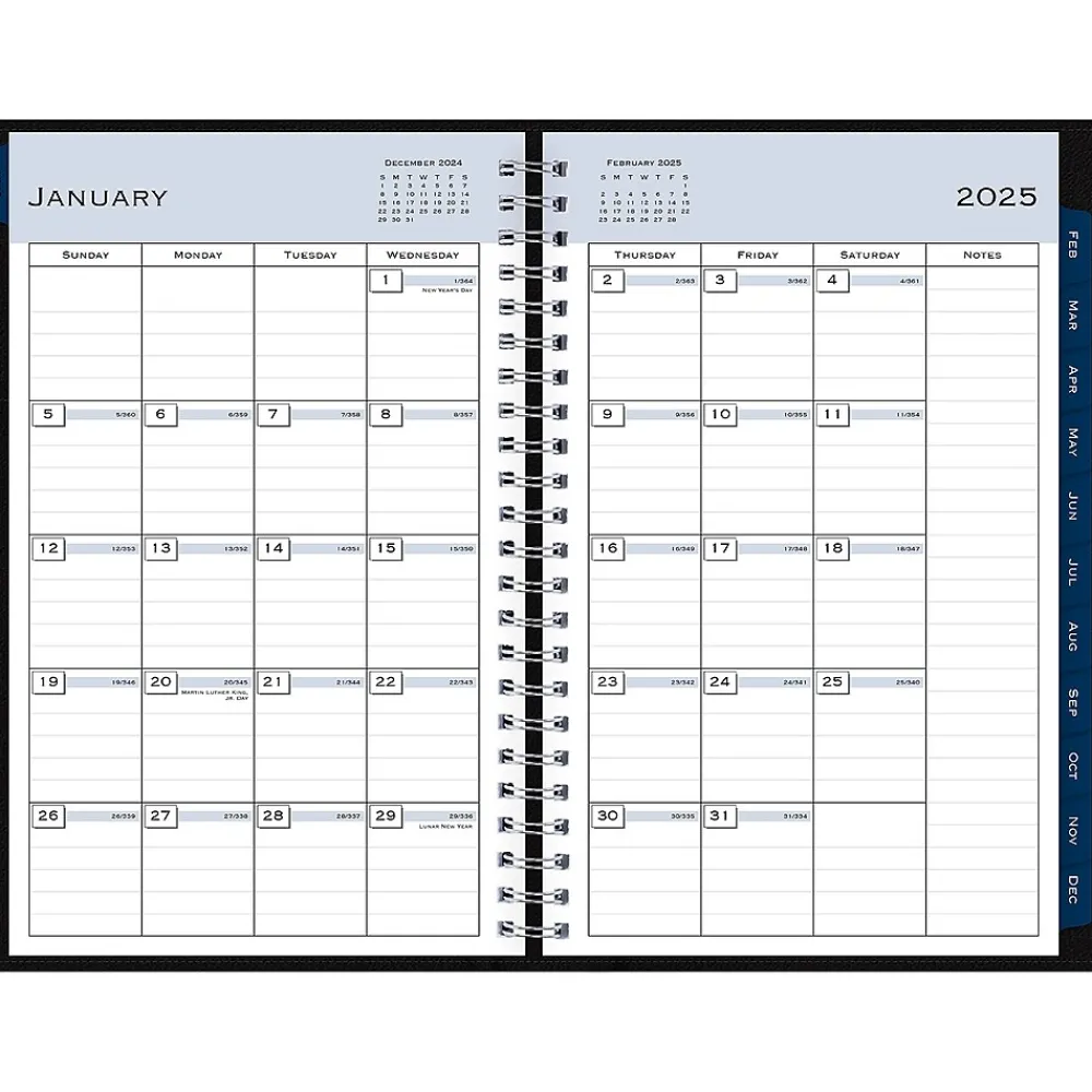 Plan to impress with a refillable planner portfolio. Designed to secure important papers, this professional agenda from Blue Sky has a pen loop and storage pockets for documents and business cards. Includes a removable 2025 weekly and monthly planner.