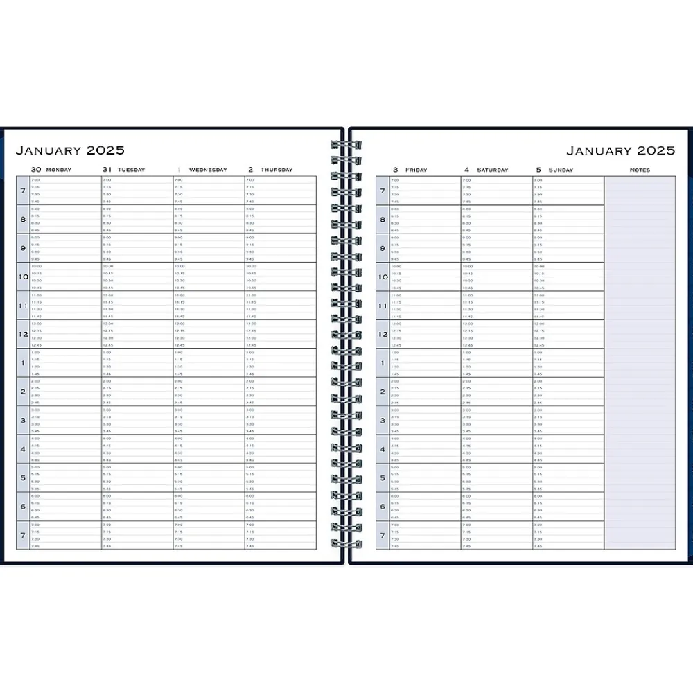 Block out time for meetings with a professional appointment book from Blue Sky. Perfect for office schedules or busy individuals, this 2025 appointment book lets you plan every day of the year in 15-minute increments. Vertical weekly views start at 7:00 a.m. and end at 9:45 p.m.