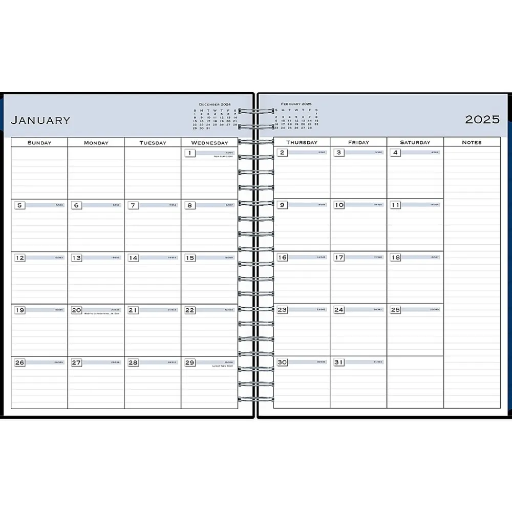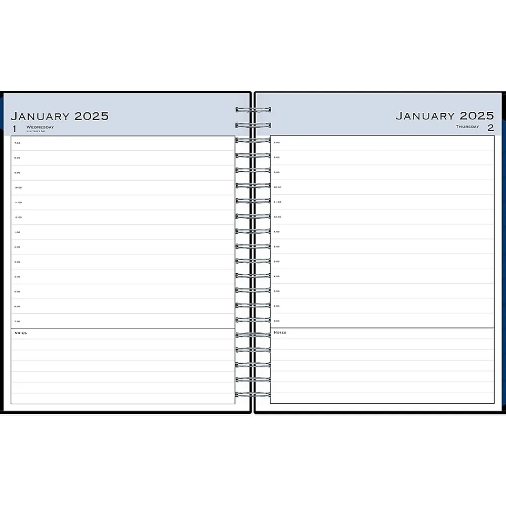 - Daily pages with hourly slots from 7:00 a.m. to 7:00 p.m. with plenty of room for notes (weekends appear on the same page); monthly spreads feature ruled daily blocks, space for notes, and quick reference calendars