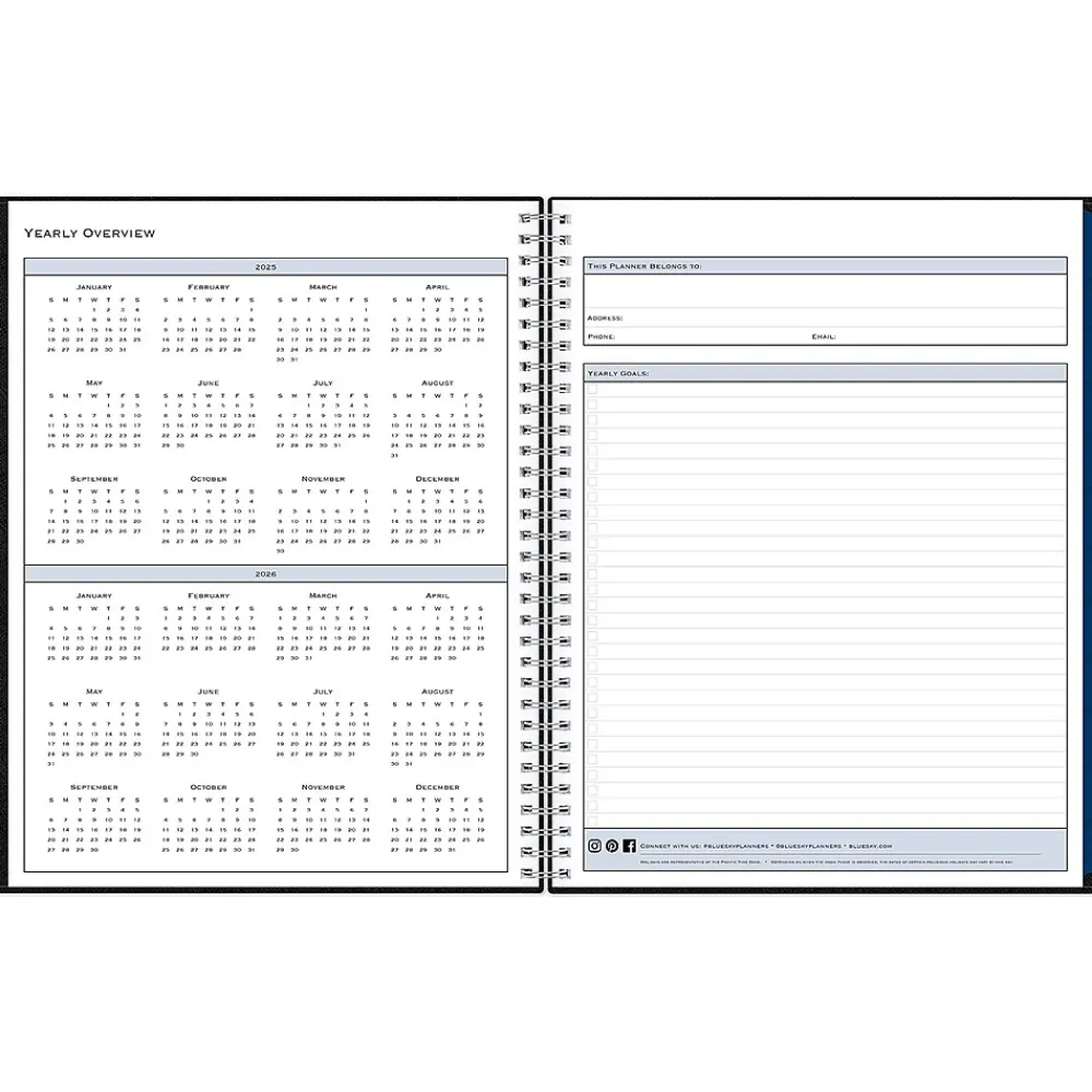 Block out time for meetings with a professional appointment book from Blue Sky. Perfect for office schedules or busy individuals, this 2025 appointment book lets you plan every day of the year in 15-minute increments. Vertical weekly views start at 7:00 a.m. and end at 9:45 p.m.