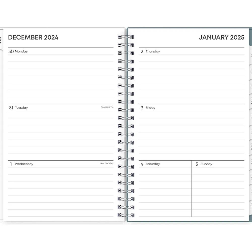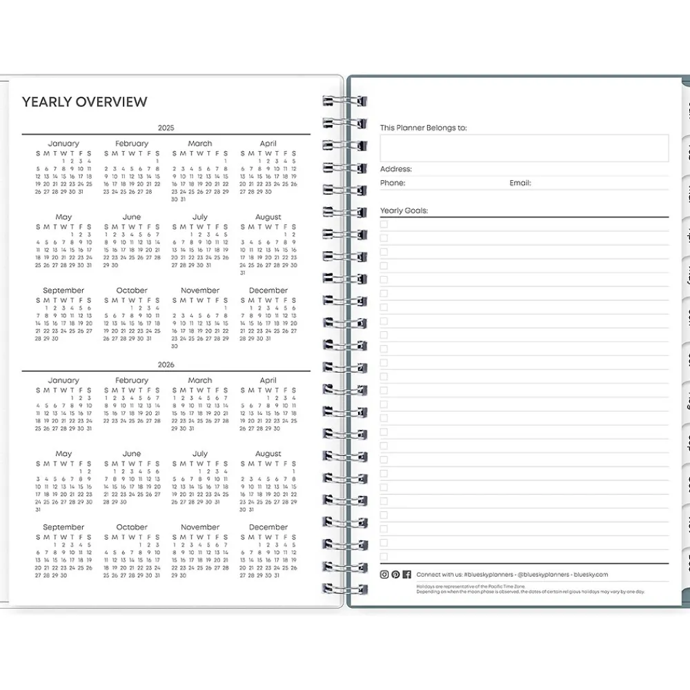 A simple planner for busy schedules. Organize tasks and time with the 2025 weekly and monthly Amitza Blue planner from Blue Sky. Use the ruled weekly layouts, tabbed monthly views, and notes pages to manage your schedule and achieve your goals.
