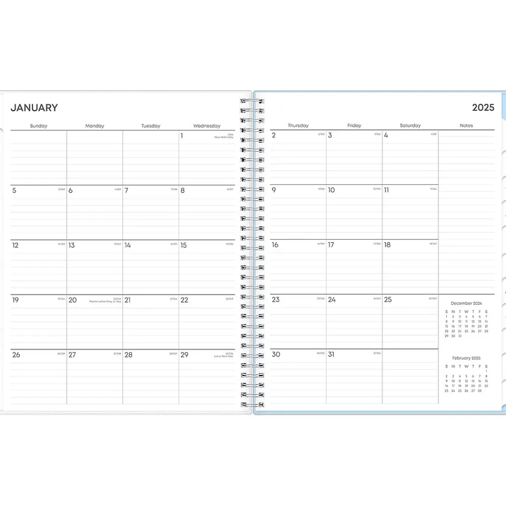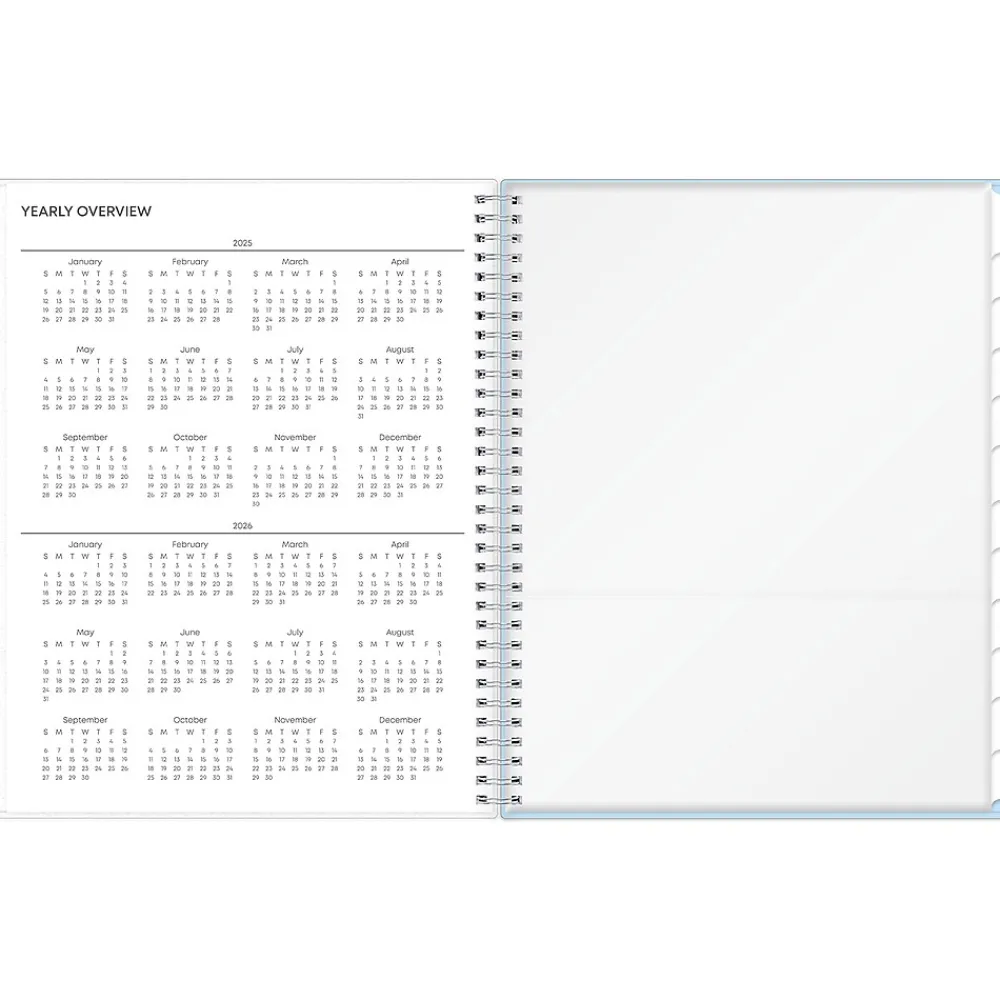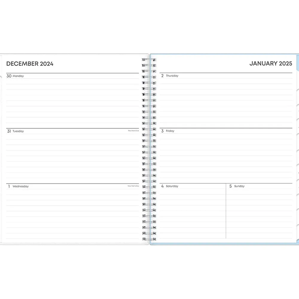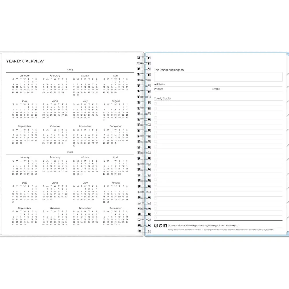Organize tasks and time with the 2025 Blue Sky Blue Block planner that includes a storage pocket. Use lined weekly layouts, tabbed monthly views, and notes pages to manage your schedule and achieve your goals.