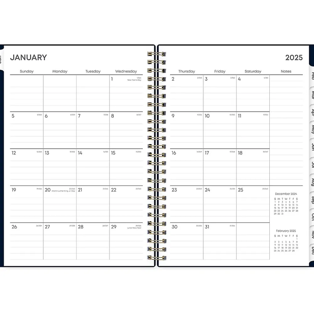 - Features two-page weekly and monthly spreads, with space for notes and quick reference calendars